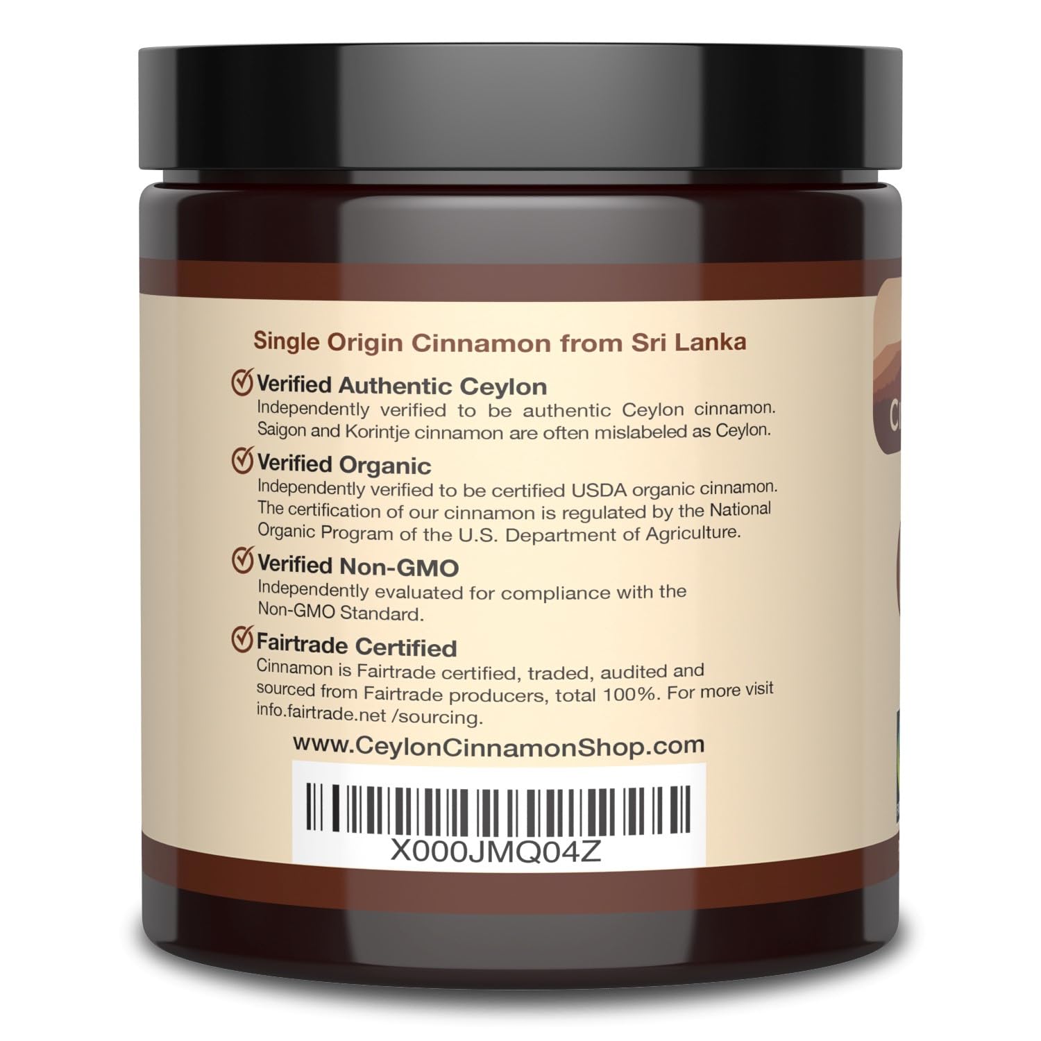 • Q: Is this Ceylon cinnamon certified organic? A: Yes, our Ceylon cinnamon is certified USDA Organic and is non-GMO project verified. This ensures that you are getting a high-quality product that is free from synthetic pesticides and fertilizers, aligning with health-conscious and sustainable choices.
