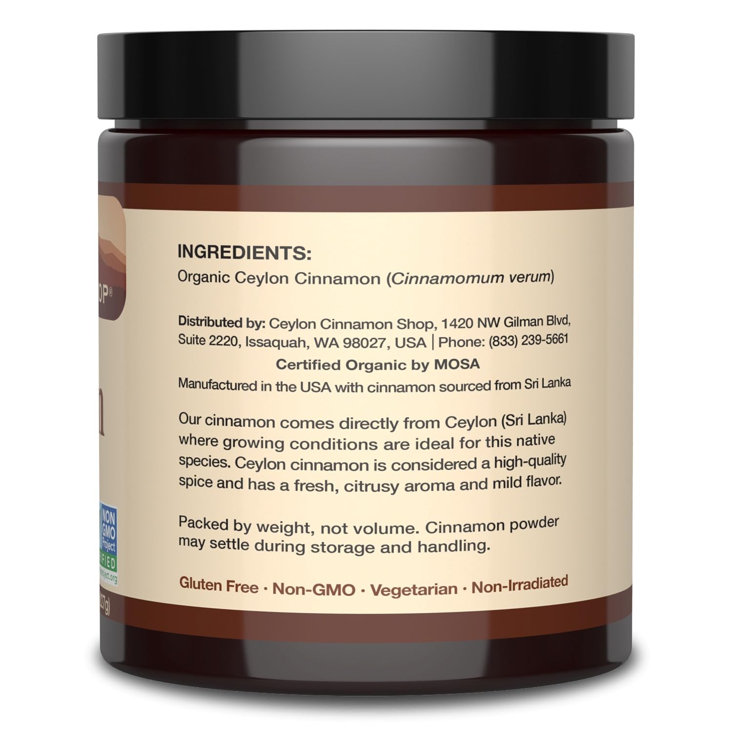 Ceylon Cinnamon Shop Organic Ceylon Cinnamon Powder, 100% Certified, 8 Ounce, Premium Quality Spice for Baking and Cooking
