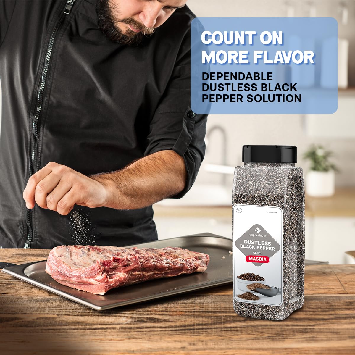 - Q: What makes Dependable Foods Dustless Black Pepper unique? A: Dependable Foods Dustless Black Pepper features a refined, dustless grind that minimizes mess while enhancing flavor in your dishes. It is made from 100% natural, non-GMO black pepper, providing a clean and pure seasoning experience.