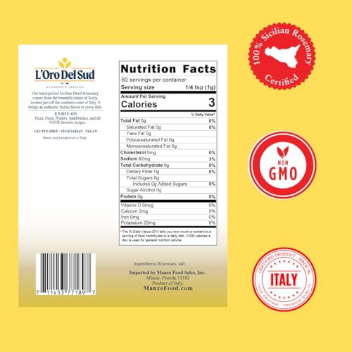 Q: What makes L'Oro Del Sud rosemary different from other brands?A: L'Oro Del Sud rosemary is premium quality, carefully harvested and dried to maintain its robust flavor and aroma, bringing an authentic taste of Italian cooking to your kitchen.