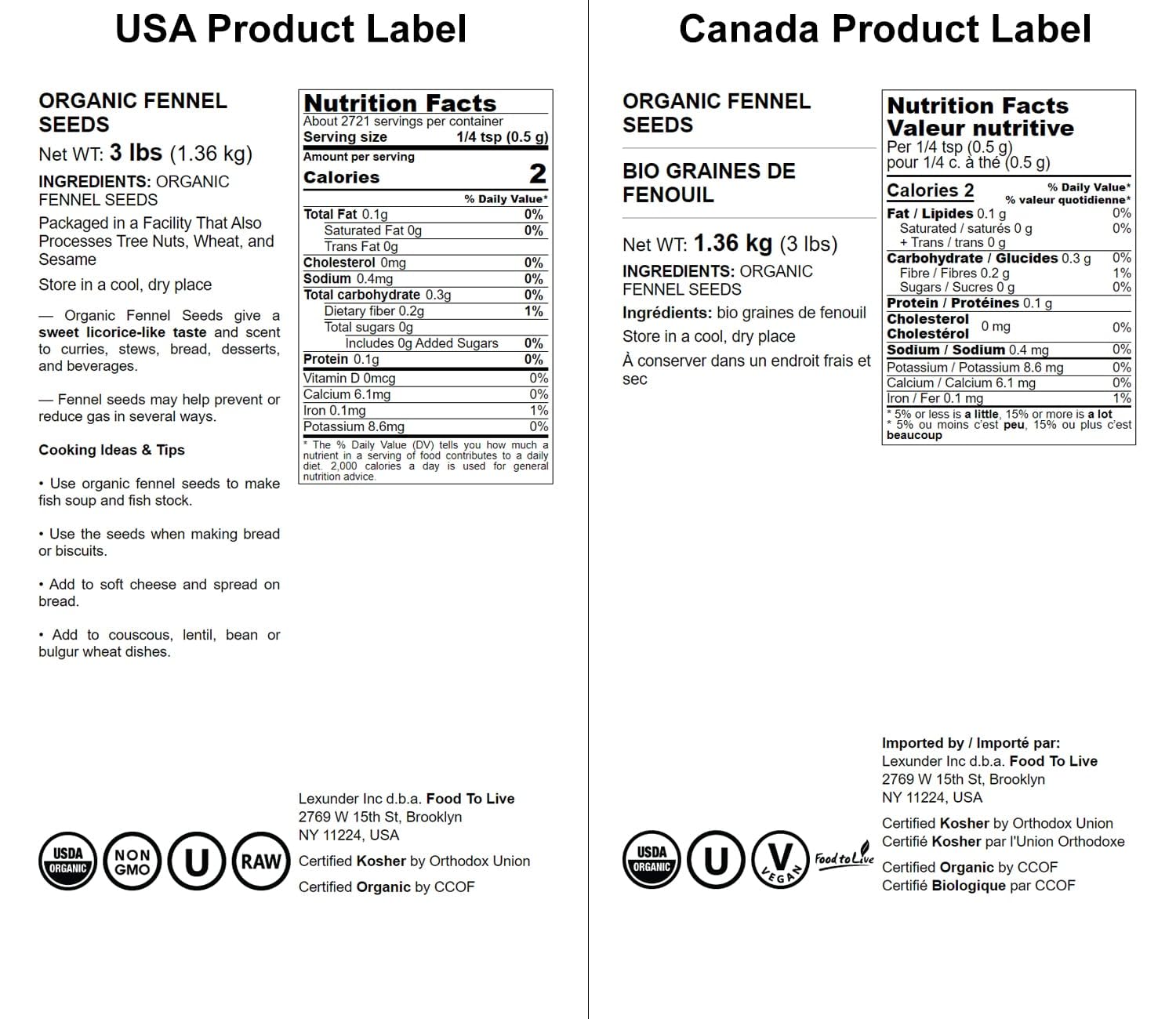 This product is ideal for home cooks, food enthusiasts, and anyone looking to add depth and flavor to their meals. Whether you are preparing a gourmet dish or simply looking for a healthy seasoning alternative, Organic Fennel Seeds from Food to Live are a perfect choice for enhancing your culinary experience.