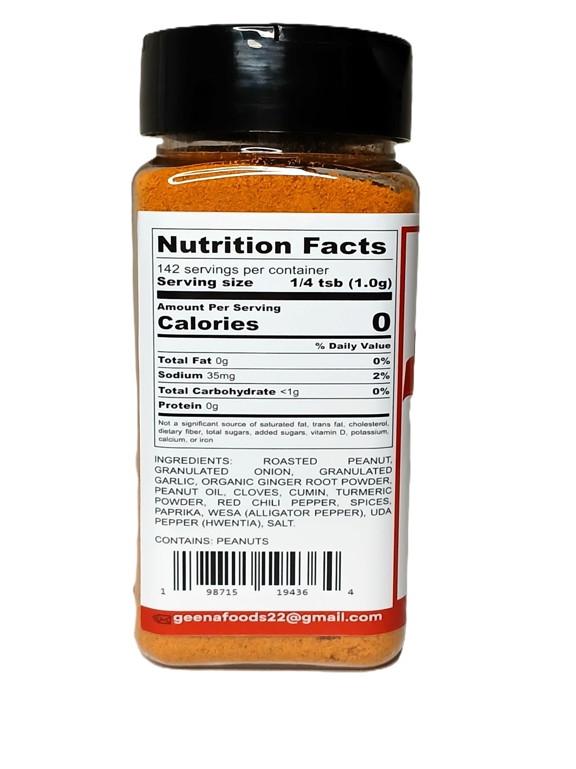 - Q: What is Geenafoods Suya pepper seasoning made of? A: Geenafoods Suya pepper seasoning is crafted with roasted peanuts as the primary ingredient, combined with traditional African herbs and spices to create a unique flavor profile.