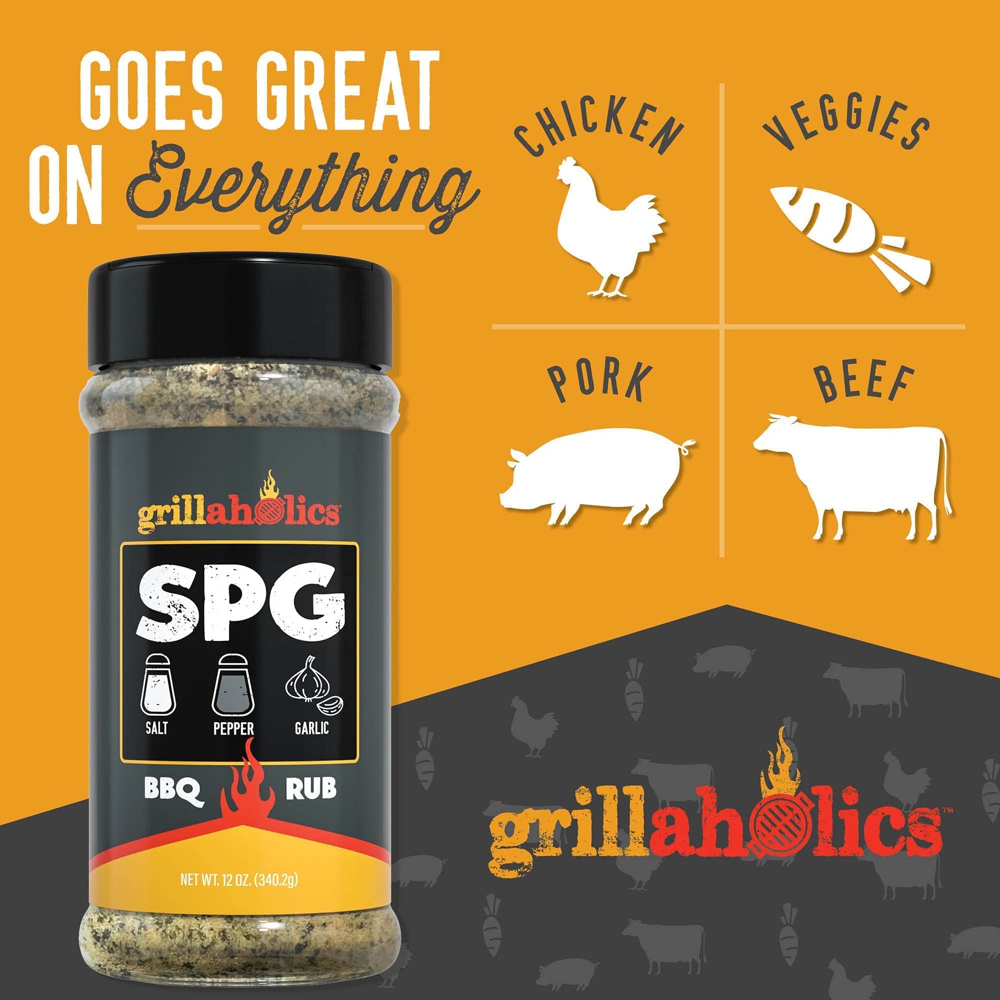 - Q: How do I use Grillaholics SPG seasoning? A: To use Grillaholics SPG seasoning, apply it as a base layer on your food before adding your favorite barbecue rub. It can also be used on its own for added flavor.