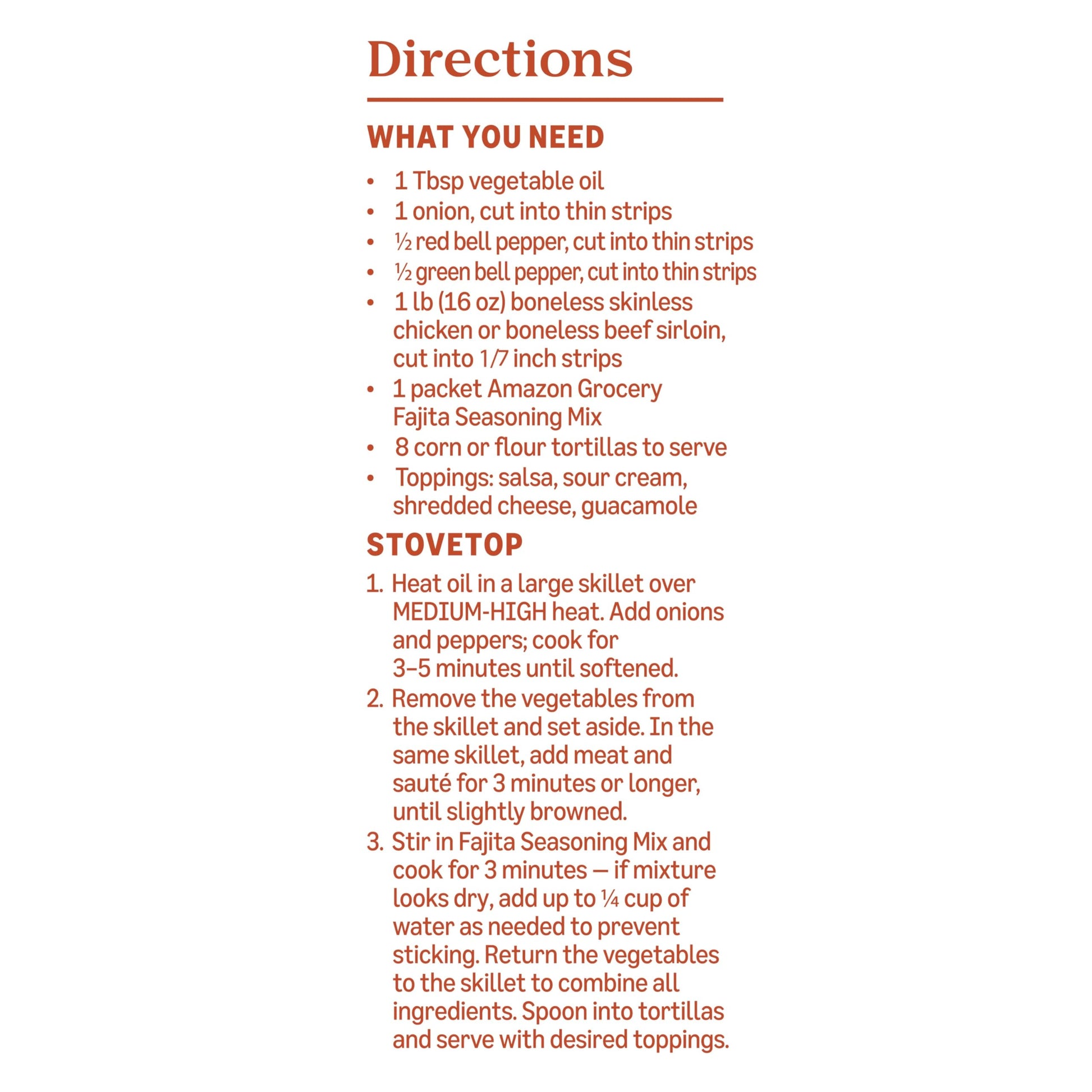 Key Features:- 1.27 ounces of Happy Belly Original Fajita Seasoning Mix.