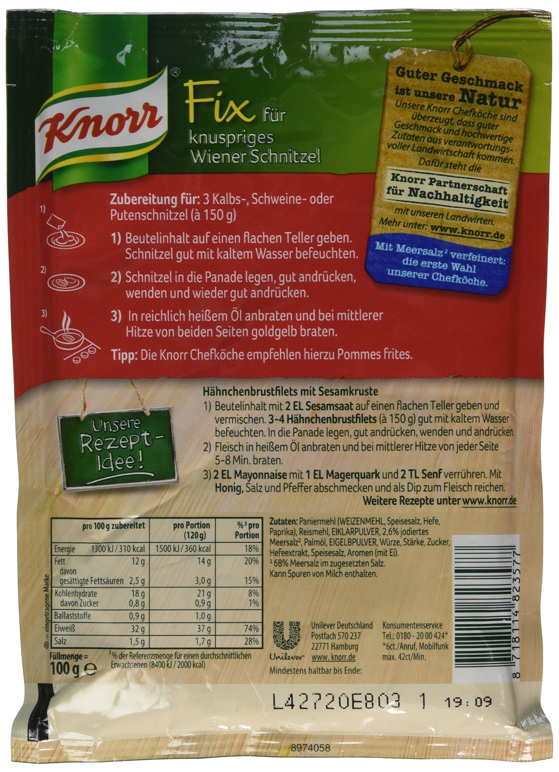 - Q: Is Knorr Fix crispy Wiener schnitzel suitable for different types of meat? A: Yes, Knorr Fix crispy Wiener schnitzel is suitable for pork, veal, and chicken, allowing for versatile meal options.