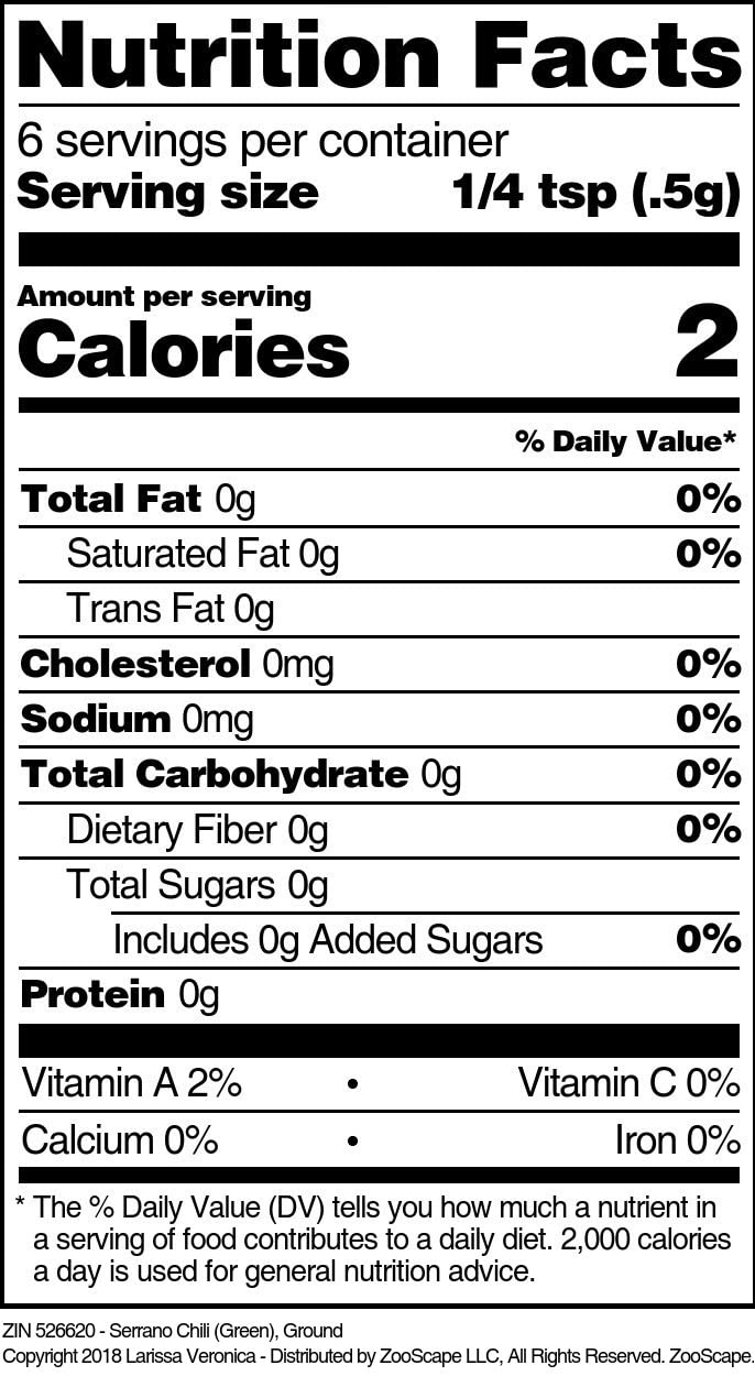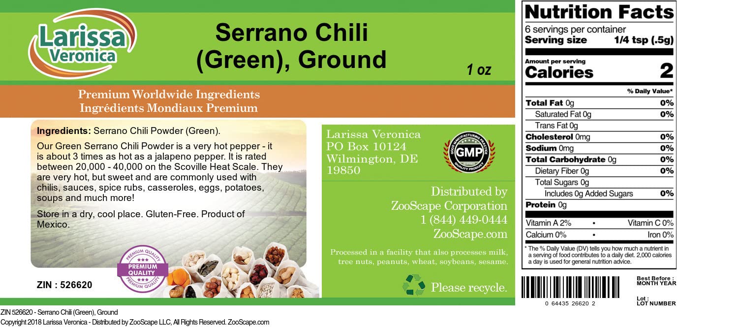Our Green Serrano Chili Powder is derived from exceptionally hot peppers, measuring between 20,000 - 40,000 on the Scoville Heat Scale. This spice is known for its sweet, fiery flavor, making it an excellent choice for chilis, sauces, spice rubs, casseroles, eggs, potatoes, soups, and more. Each batch is crafted with the utmost quality control, ensuring that you receive a product that meets the highest standards of purity, stability, and freshness. Larissa Veronica is committed to providing affordable, premium-quality products that families can trust. Packaged in tamper-proof, food-grade, recyclable containers, our chili powder is designed for both convenience and safety.