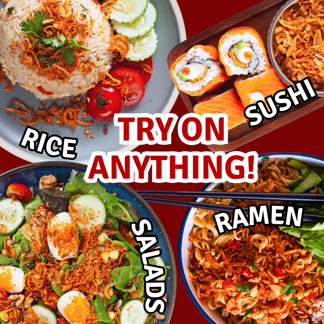 - Q: What is MaeMai Chili Crisp and how is it used? A: MaeMai Chili Crisp is a crunchy condiment made from spicy onion and garlic flakes, designed to enhance the flavor of various dishes. It can be used as a topping for ramen, rice, and salads, adding a medium hot spice level to your meals.