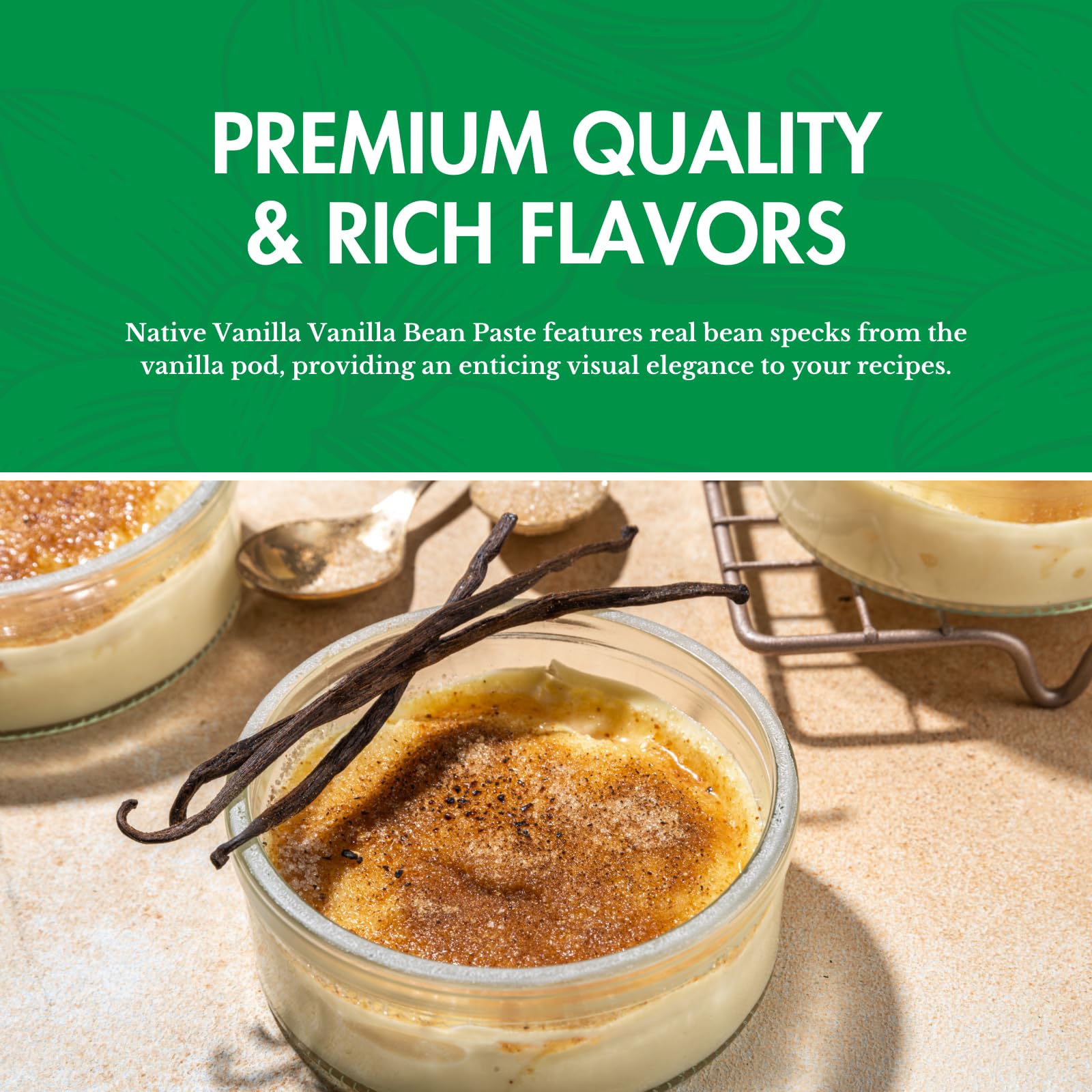 - Q: What makes Native Vanilla's Vanilla Bean Paste premium quality? A: Native Vanilla's Vanilla Bean Paste is made from fairly traded, sustainably sourced vanilla beans. The product includes real bean specks, which not only enhance flavor but also add visual elegance to recipes.