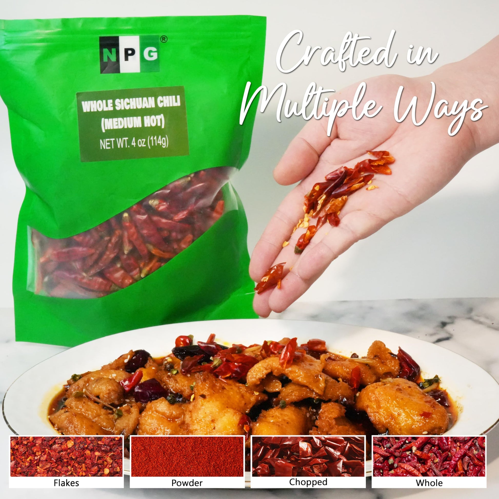 NPG Dried Sichuan Red Chili Peppers are sourced directly from the Szechuan region, renowned for its culinary heritage. Each 4-ounce resealable bag contains hand-selected, natural chilies that ensure the highest quality and freshness. These chilies are perfect for making chili oil, paste, and sauces, or simply adding a spicy kick to your favorite recipes. With no additives or artificial coloring, these chilies maintain their pure flavor and natural essence, making them a healthy choice for spice enthusiasts.