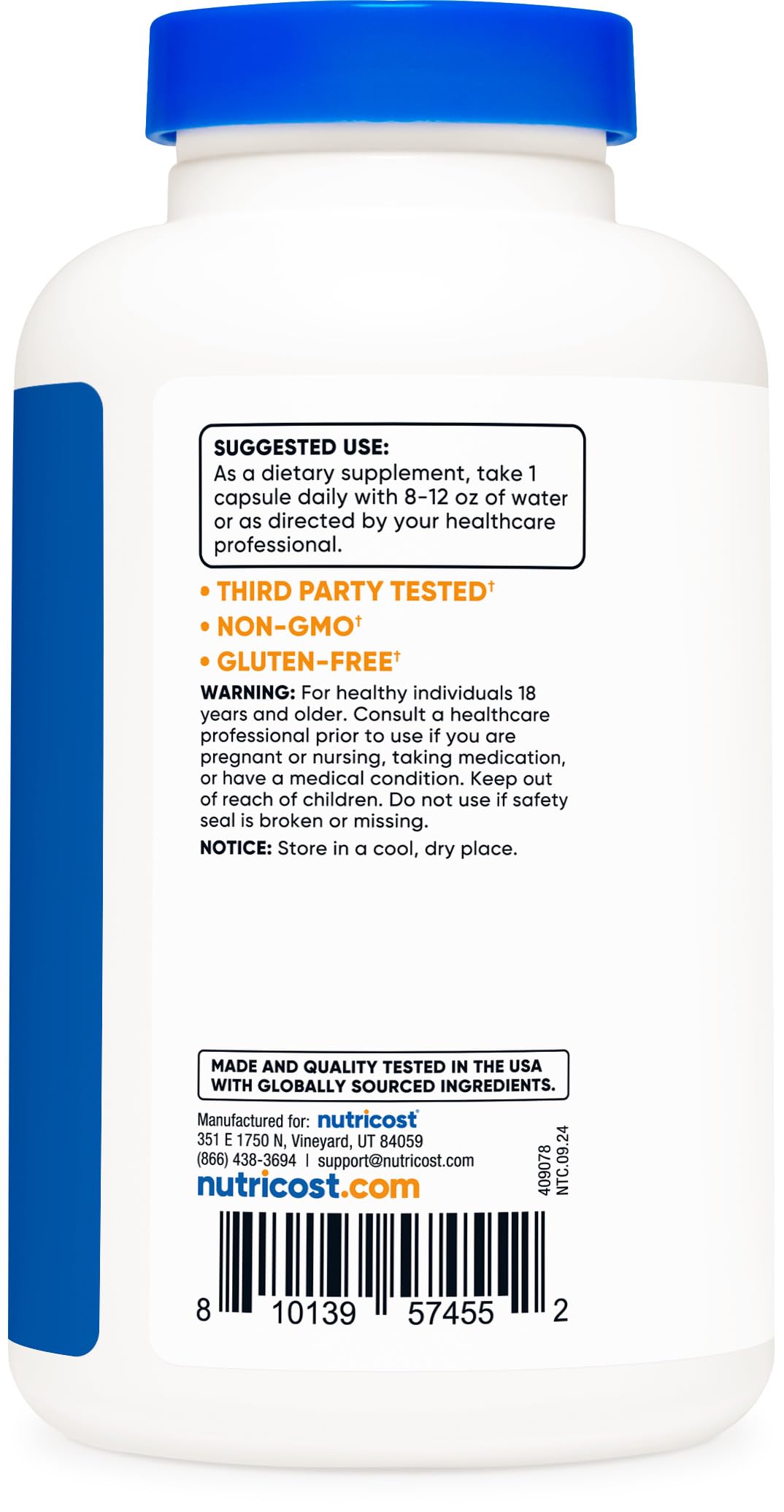 These compact pieces are formulated to be non-GMO and gluten-free, ensuring they fit into a variety of dietary preferences. With 240 compact pieces in each bottle, users can enjoy a long-lasting supply that supports consistent use. Manufactured in a facility compliant with Good Manufacturing Practices (GMP) and certified by the National Sanitation Foundation (NSF), Nutricost ensures that you receive a product that meets stringent quality standards.