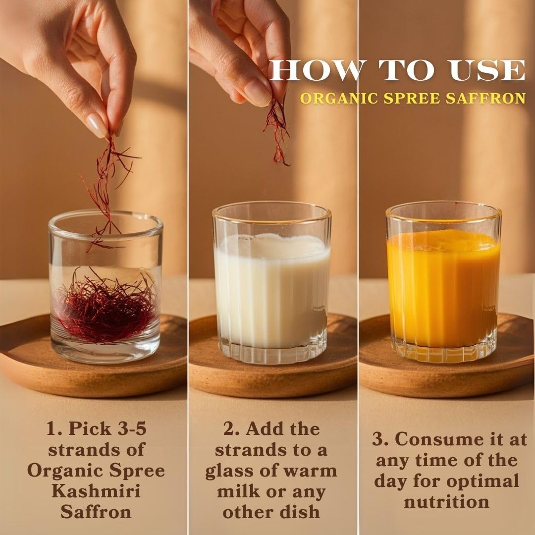 - Q: What is Organic Spree Kashmiri Saffron? A: Organic Spree Kashmiri Saffron is a premium quality saffron spice sourced from the Pampore region of Jammu and Kashmir, India. It is known for its vibrant color, aroma, and flavor, making it a sought-after culinary ingredient.