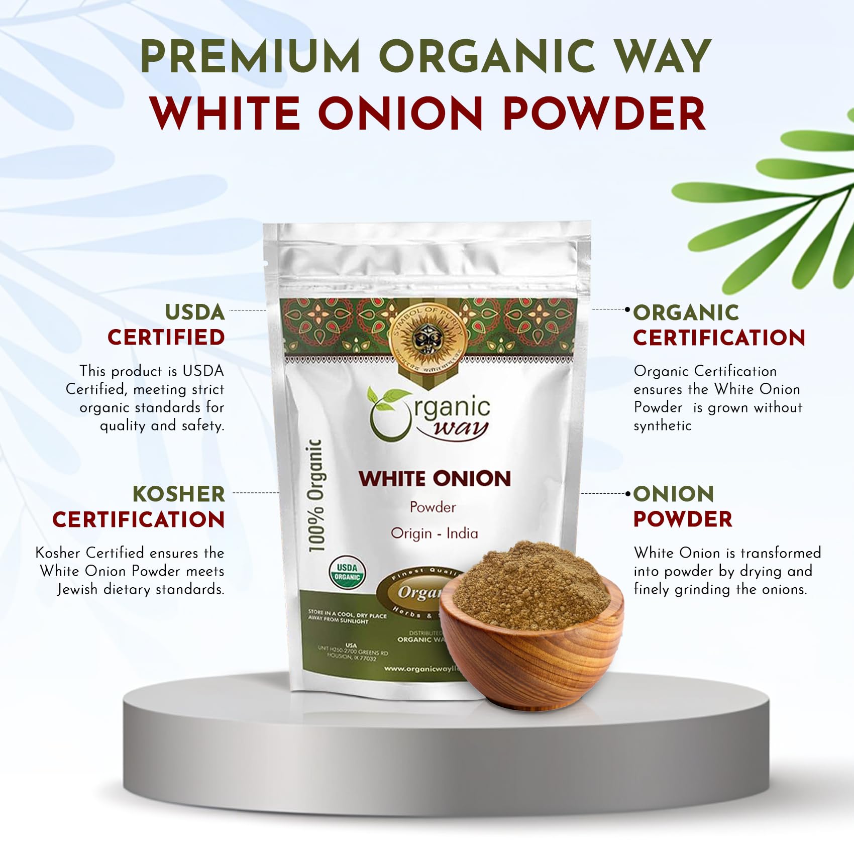 Q: Is Organic Way White Onion Power gluten-free and non-GMO?A: Yes, Organic Way White Onion Power is gluten-free and non-GMO. It is also USDA certified organic and 100% kosher, ensuring that it meets high-quality standards.