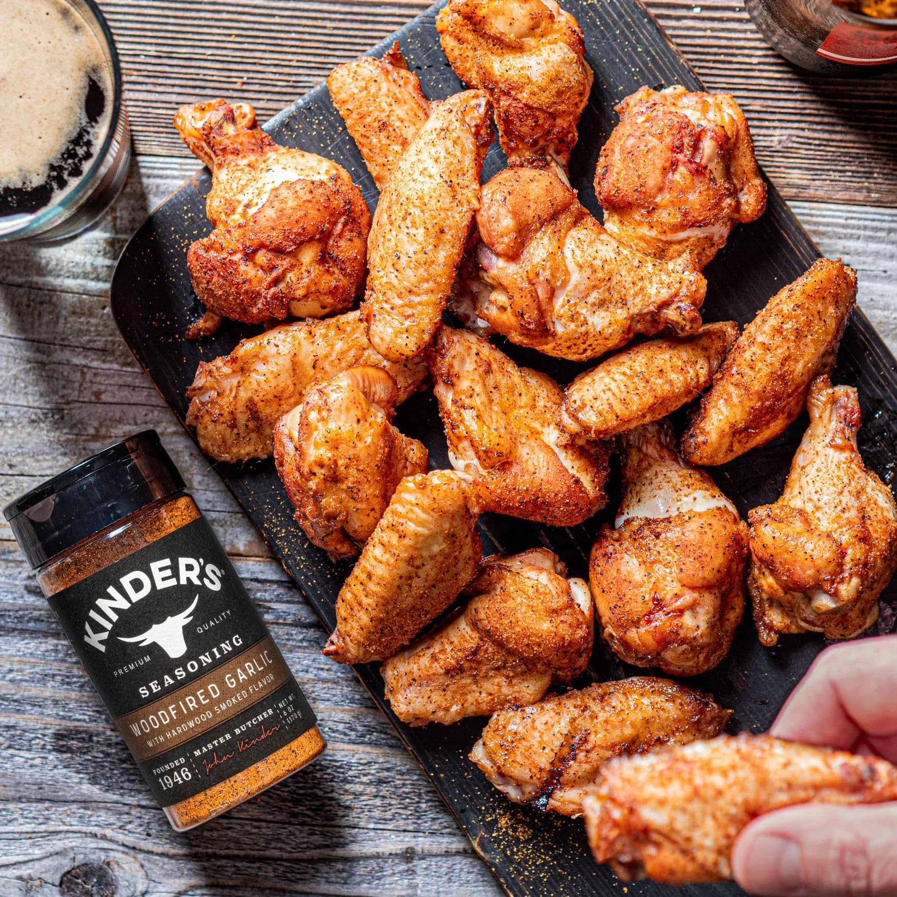 - Q: How do I use Kinder's Woodfired Garlic Seasoning? A: To use Kinder's Woodfired Garlic Seasoning, simply sprinkle it on your choice of meat or vegetables before cooking. It can be used for grilling, roasting, or sautéing to impart a delicious roasted garlic flavor.