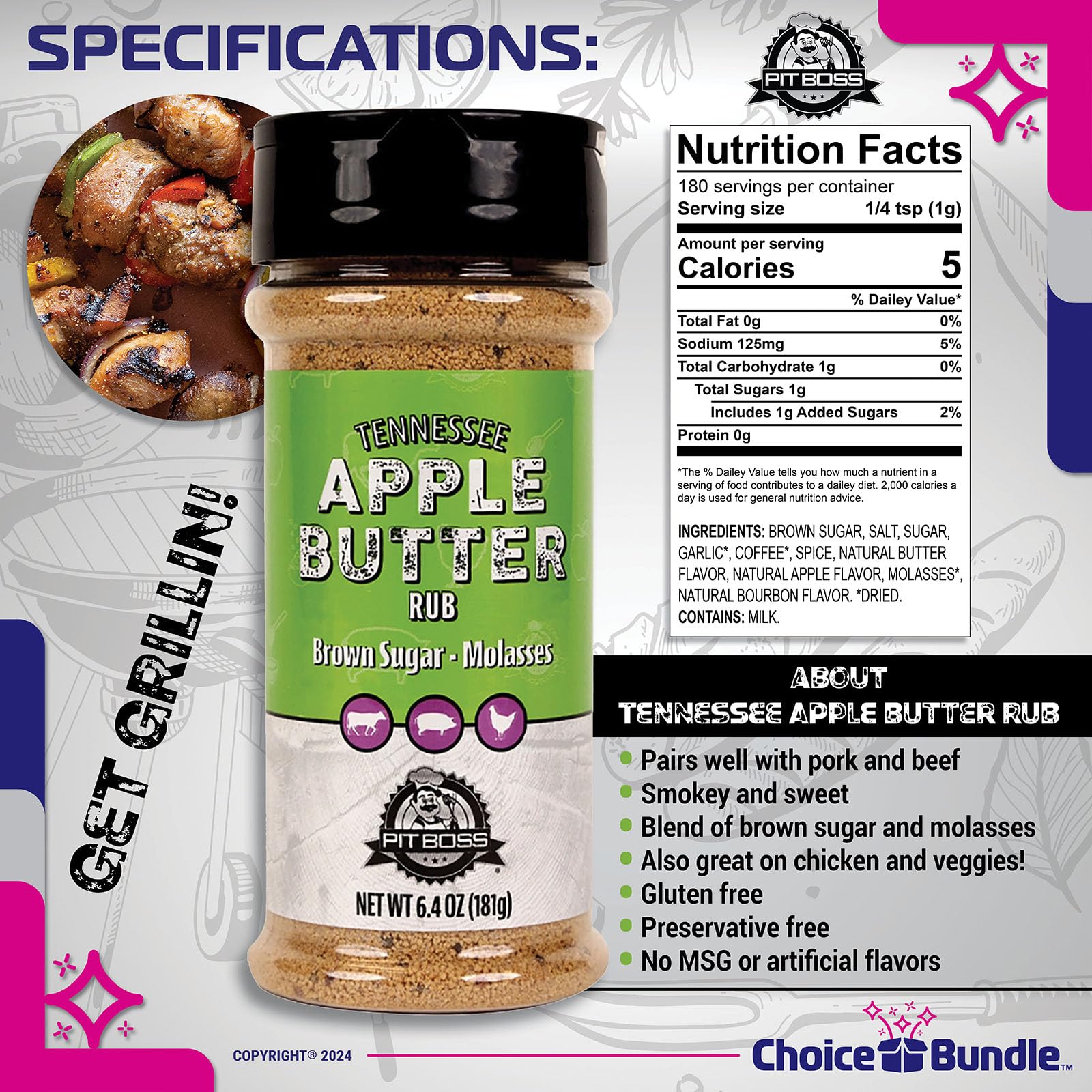 - Q: What meats pair well with the Pit Boss Tennessee Apple Butter BBQ Rub? A: The rub is ideal for chicken, pork, beef, and even vegetables, adding a rich flavor to a variety of grilled dishes.