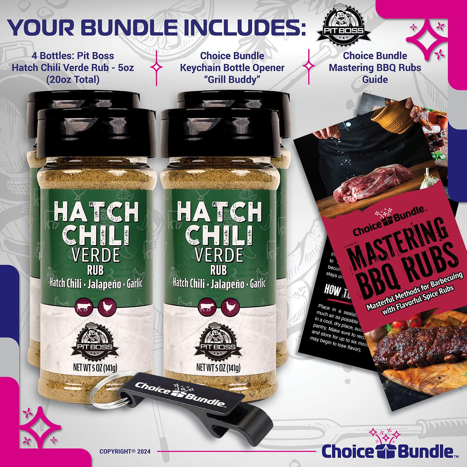 Key Features:- Includes 4 bottles of Pit Boss Hatch Chili Verde Rub (5 oz each).