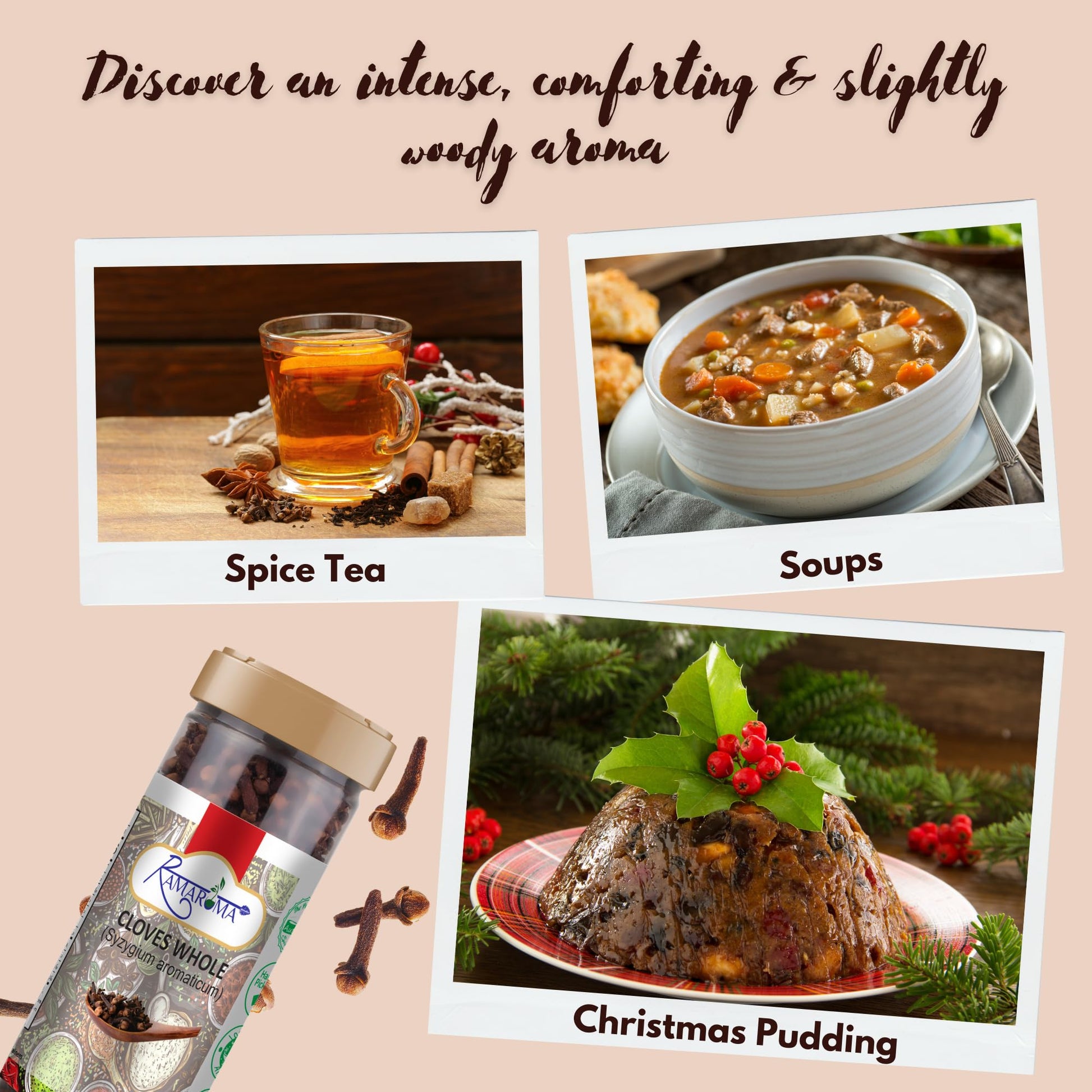 ?You Will Love Our Cloves Pods By Ramaroma Brand Clove Is The Dried Bud Of A Flower That Is Harvested Immaturely And Dried To Become The Woody Textured Whole Clove You Know. It Is The Most Common Part In Spice Blends Like Garam Masala, Pumpkin Spice And Also Used To Make Teas. Cloves Cloves Are Very Flavourful And Aromatic. Whole Or Ground Cloves Are Used To Flavor Sauces, Soups And Rice Dishes, Notably A Number Of Traditional Indian Dishes, And It'S One Of The Components Of Garam Masala. Alongwith Cooking Cloves Are Also Used For Perfumes, Medicines And Breath Fresheners. Drinking Clove Tea Is Good For Health Too.