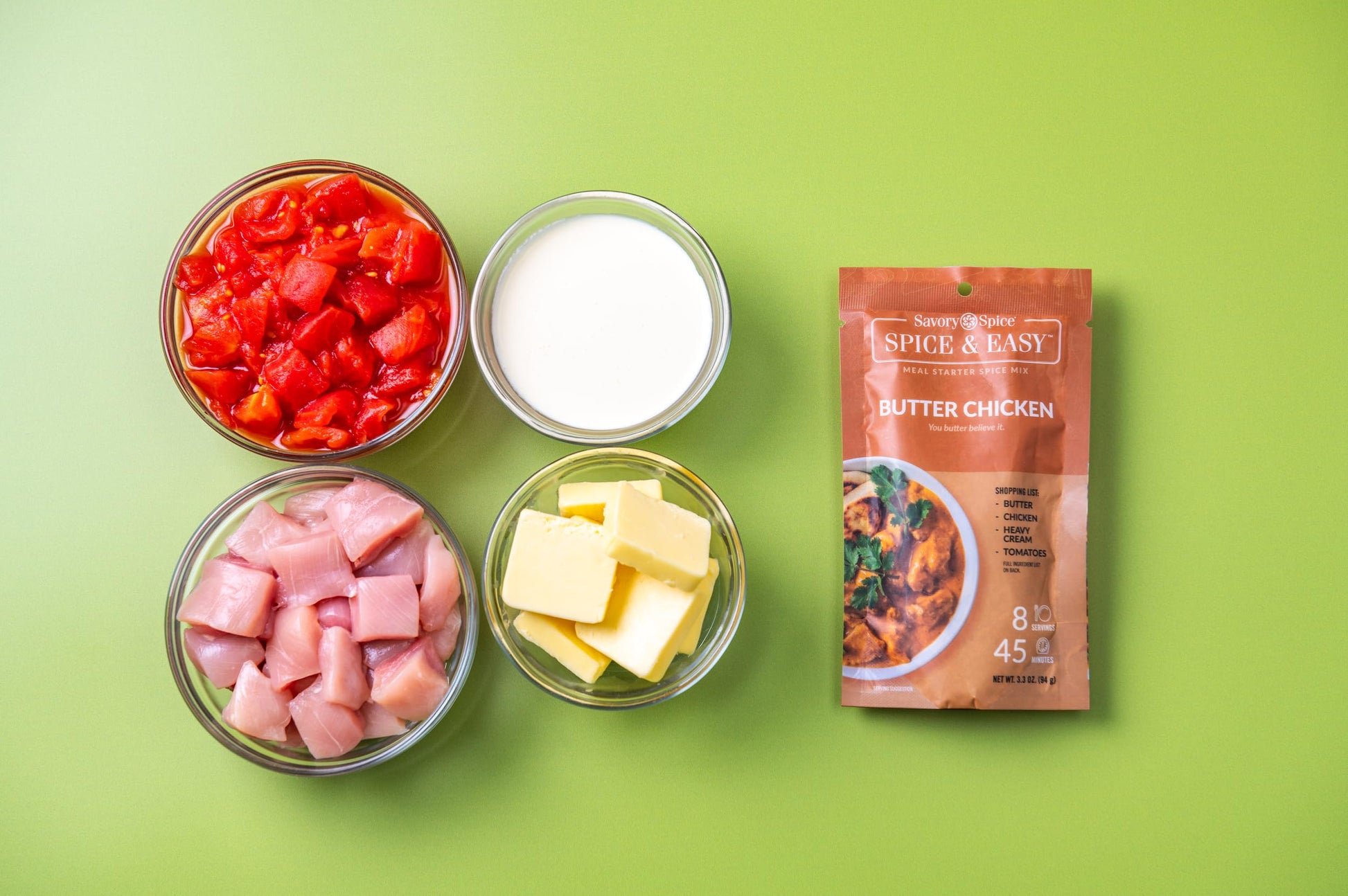 Q: How long does it take to prepare butter chicken with this spice mix?A: Preparing butter chicken with this spice mix takes only a few minutes to get started, and the entire cooking process can be completed quickly, making it perfect for weeknight dinners.