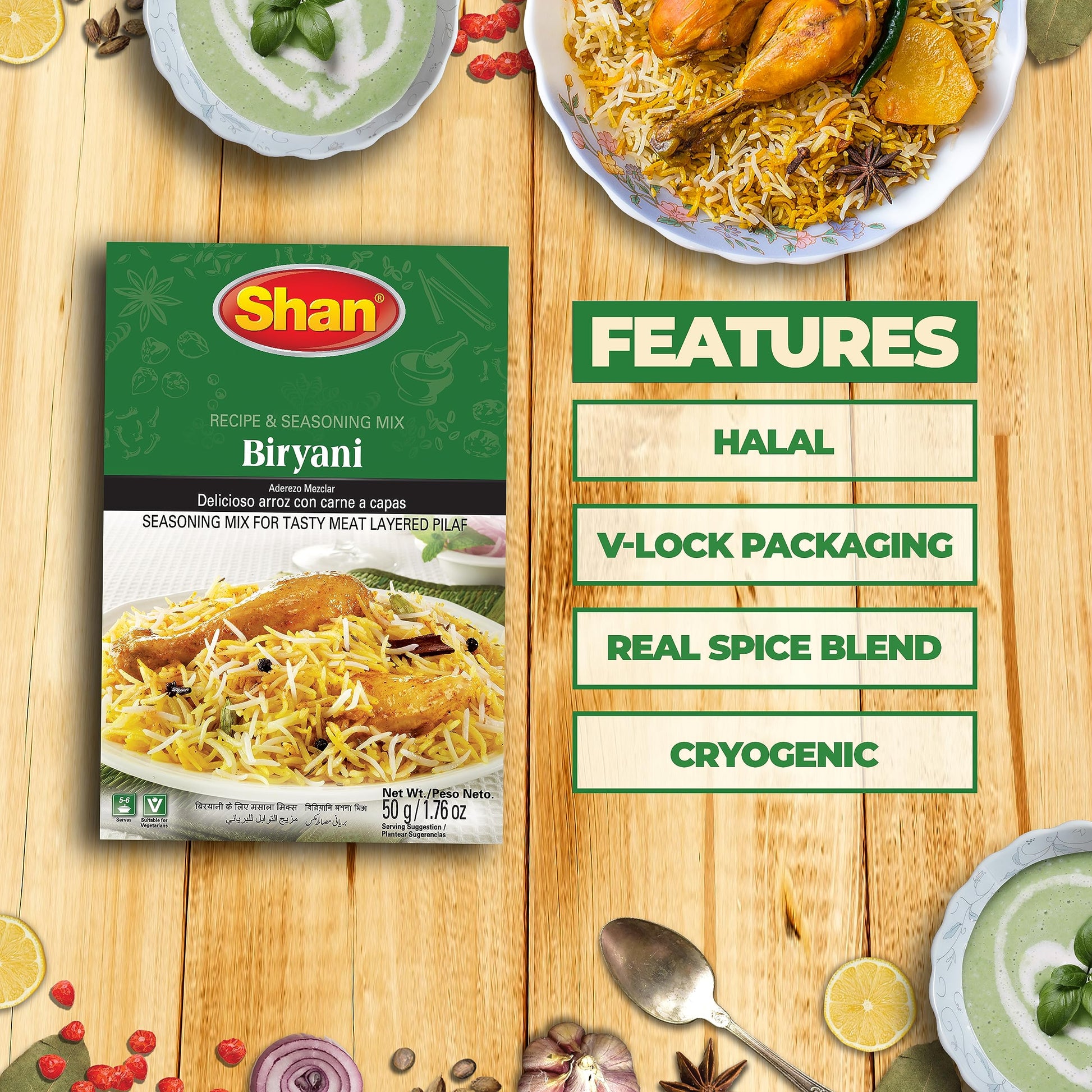 - Q: How many servings does one packet of Shan Biryani Masala provide? A: One packet of Shan Biryani Masala, which contains 50g of seasoning, is sufficient to serve up to 8 people, making it a great choice for family meals or gatherings.