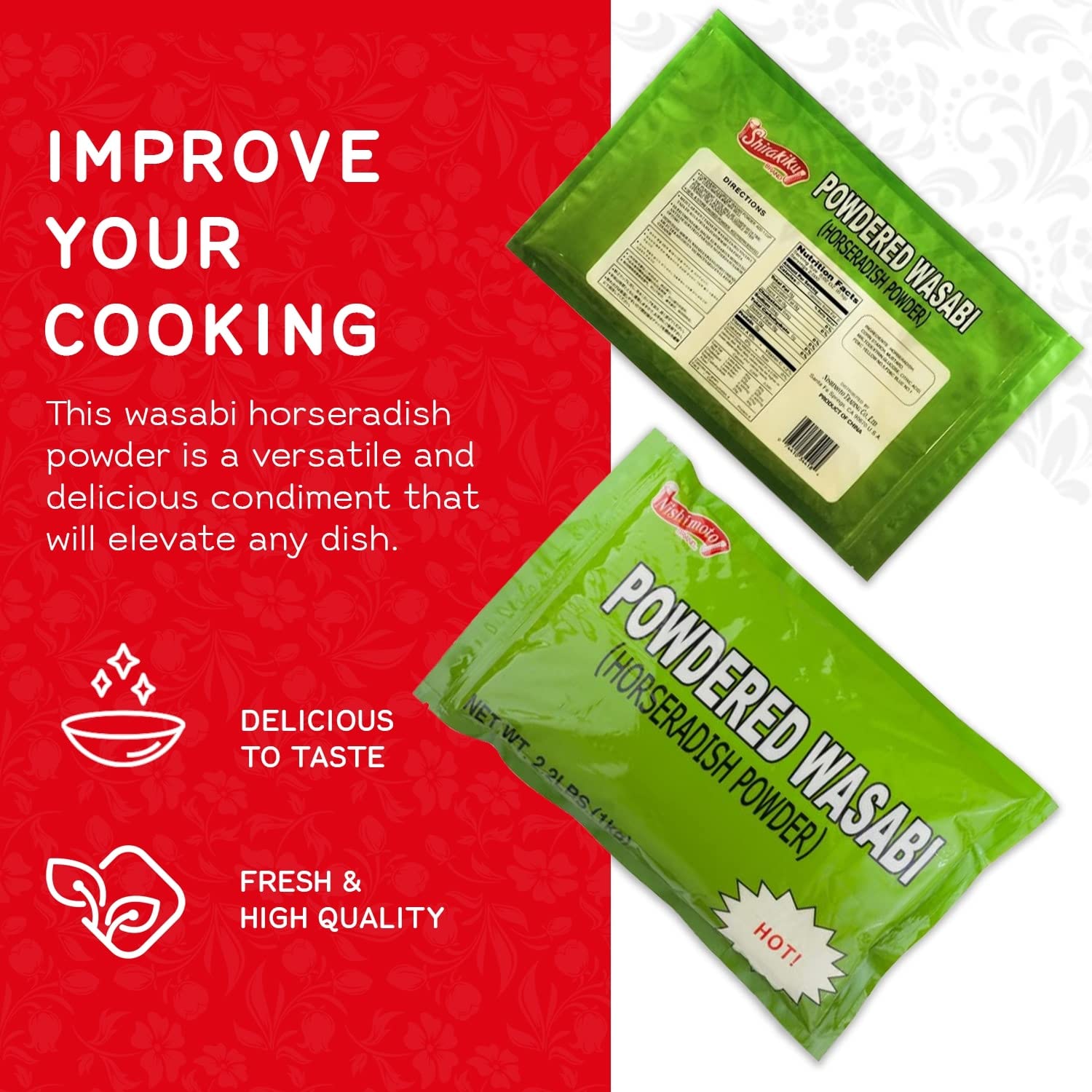 - Q: What is the size of the Shirakiku Wasabi Powder package? A: The Shirakiku Wasabi Powder is available in a package size of two point two pounds, which is convenient for regular use in cooking.