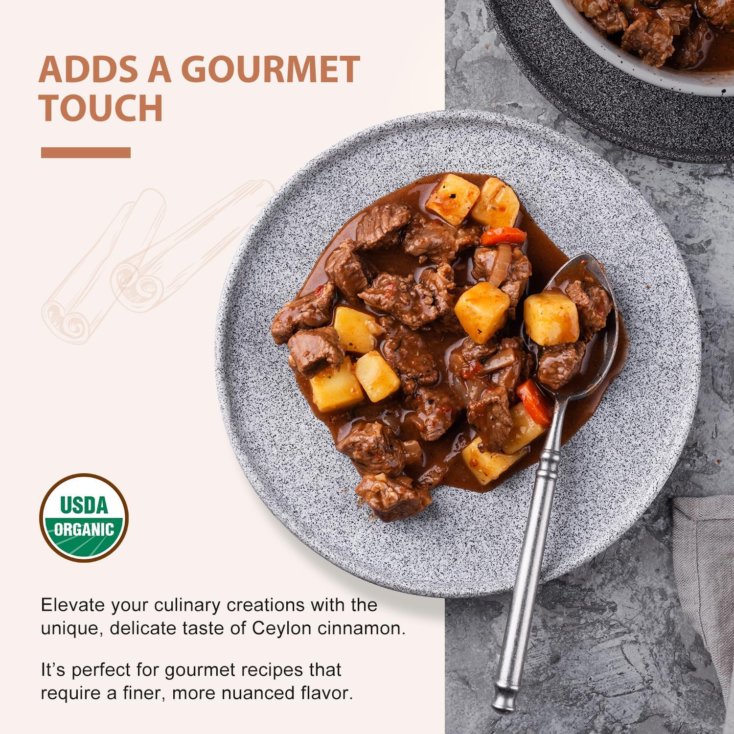 - Q: What is Soeos Organic Ceylon Cinnamon Powder used for? A: Soeos Organic Ceylon Cinnamon Powder is versatile and can be used in a variety of culinary applications, including baking pies, custards, and cookies, as well as flavoring savory dishes like lamb, chicken, or pork.