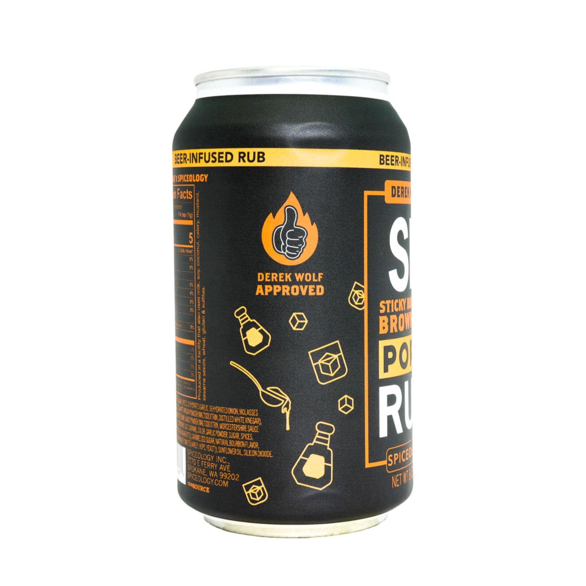 - Q: What is the size of the packaging for the Spiceology rub? A: The Spiceology Sticky Bourbon Brown Ale rub comes in an eight-ounce can with a resealable lid, allowing for easy storage.