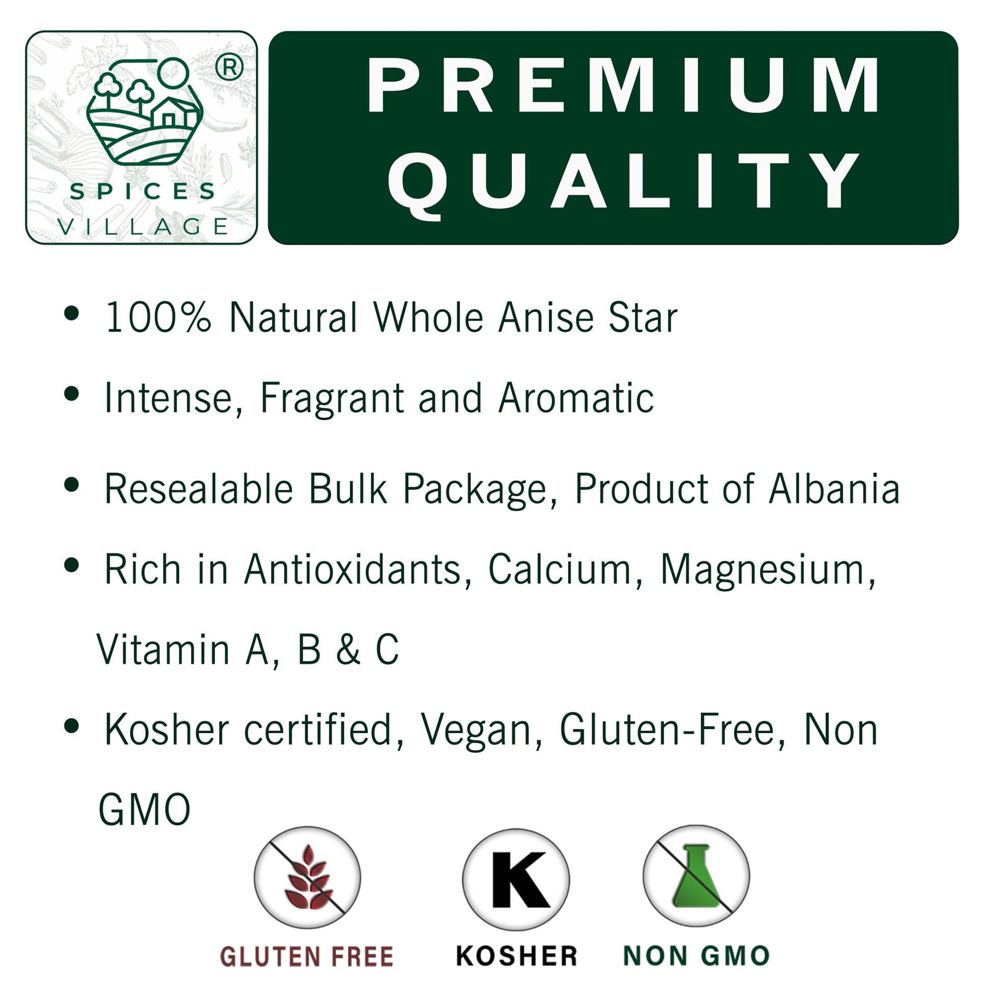 - Q: Is Spices Village Whole Star Anise organic and non-GMO? A: Yes, Spices Village Whole Star Anise is certified organic and non-GMO. This ensures that the product is free from synthetic additives and maintains the highest purity, making it a great choice for health-conscious consumers.