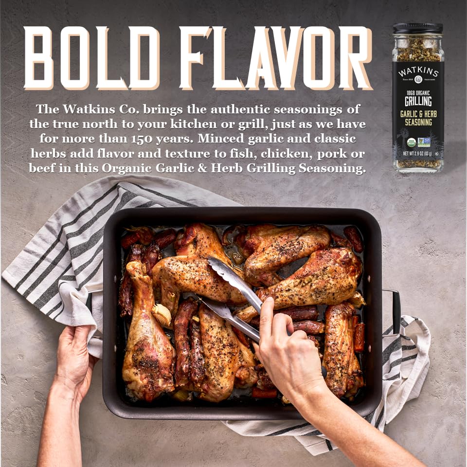 - Q: Are there any allergens in this seasoning? A: While Watkins Organic Grilling Garlic & Herb Seasoning is gluten-free and made with organic ingredients, it is always advisable to check the packaging for specific allergen information.