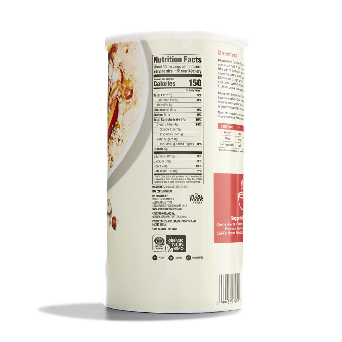 - Q: How can I incorporate rolled oats into my diet? A: You can enjoy 365 Organic Old Fashioned Rolled Oats in various ways, such as in oatmeal, overnight oats, smoothies, or baked goods. They are versatile and can be used in recipes for cookies, granola bars, or as a topping for yogurt.