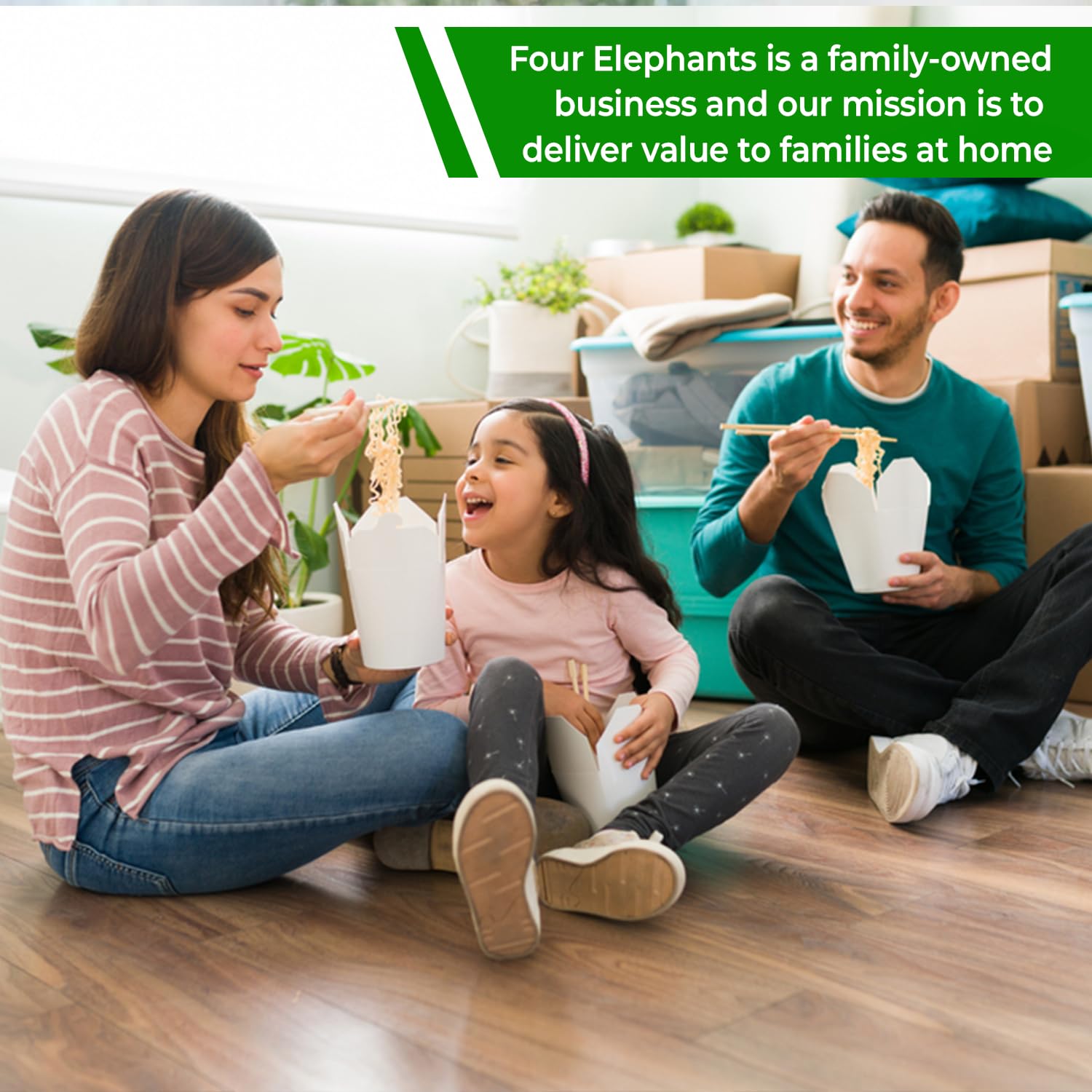 Q: What are the nutritional benefits of Four Elephants rice sticks?A: Four Elephants rice sticks are non-GMO, cholesterol-free, and only 170 calories per serving (50g), making them a healthy choice for various meals.