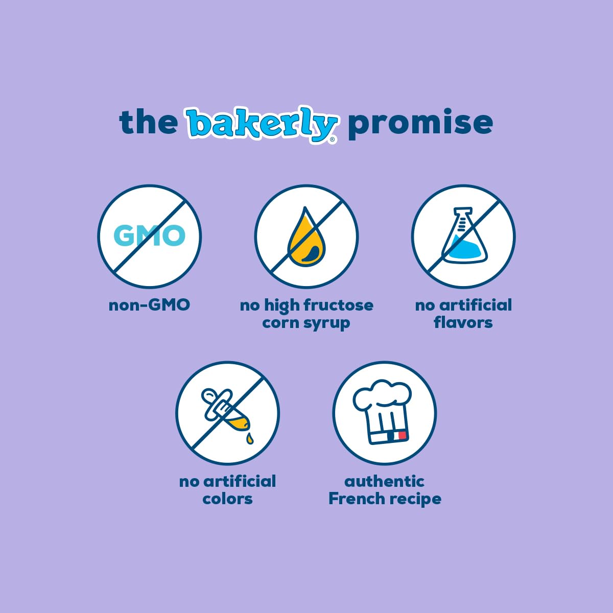 Q: What are bakerly Peanut Butter and Grape Filled Crepes made of?A: bakerly Peanut Butter and Grape Filled Crepes are made with simple, authentic ingredients that are non-GMO and free from high fructose corn syrup, artificial flavors, and colors. They are crafted to provide a wholesome snacking experience.