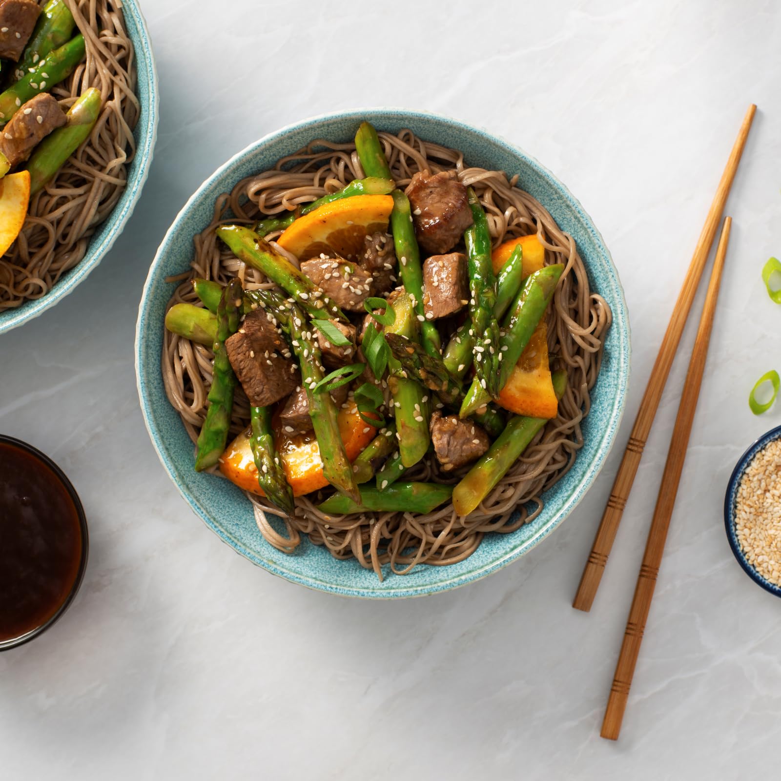 Soba are buckwheat and wheat flour noodles with a delicious nutty taste. They are often eaten cold in salads or as a side but also taste great in stir-fries or soups.