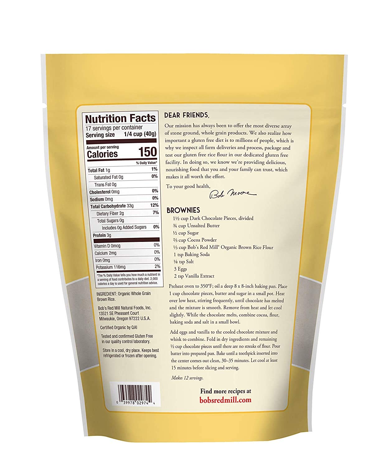 - Q: Is Bob's Red Mill Organic Whole Grain Brown Rice Flour suitable for people with gluten intolerance? A: Yes, Bob's Red Mill Organic Whole Grain Brown Rice Flour is certified gluten-free, making it a safe option for individuals with gluten intolerance or celiac disease.