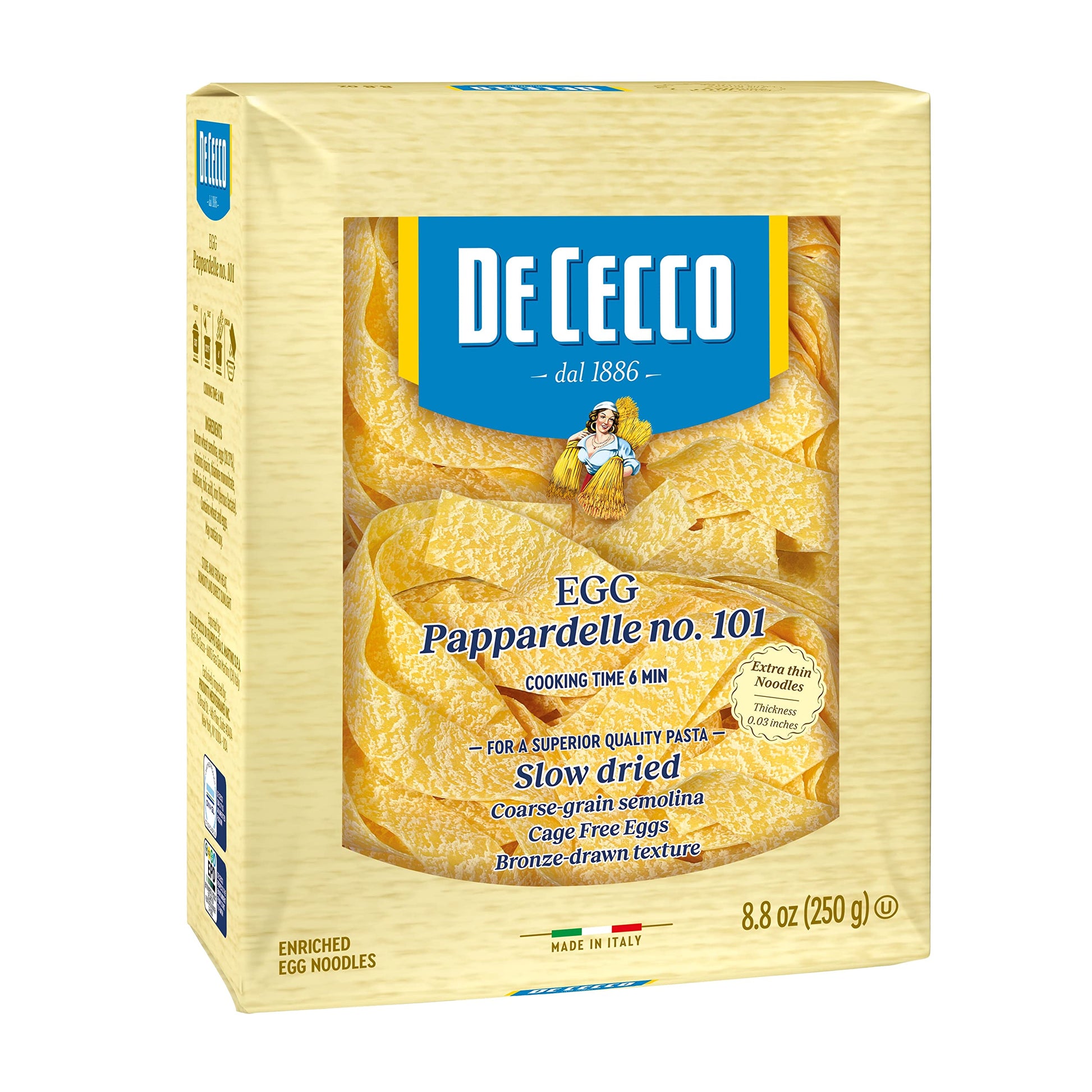 - Q: How should I cook De Cecco Egg Pappardelle for the best results? A: To achieve the best results, cook De Cecco Egg Pappardelle in a large pot of salted boiling water for 3-5 minutes. Since this pasta has a unique texture, it pairs well with rich sauces that cling to its surface.