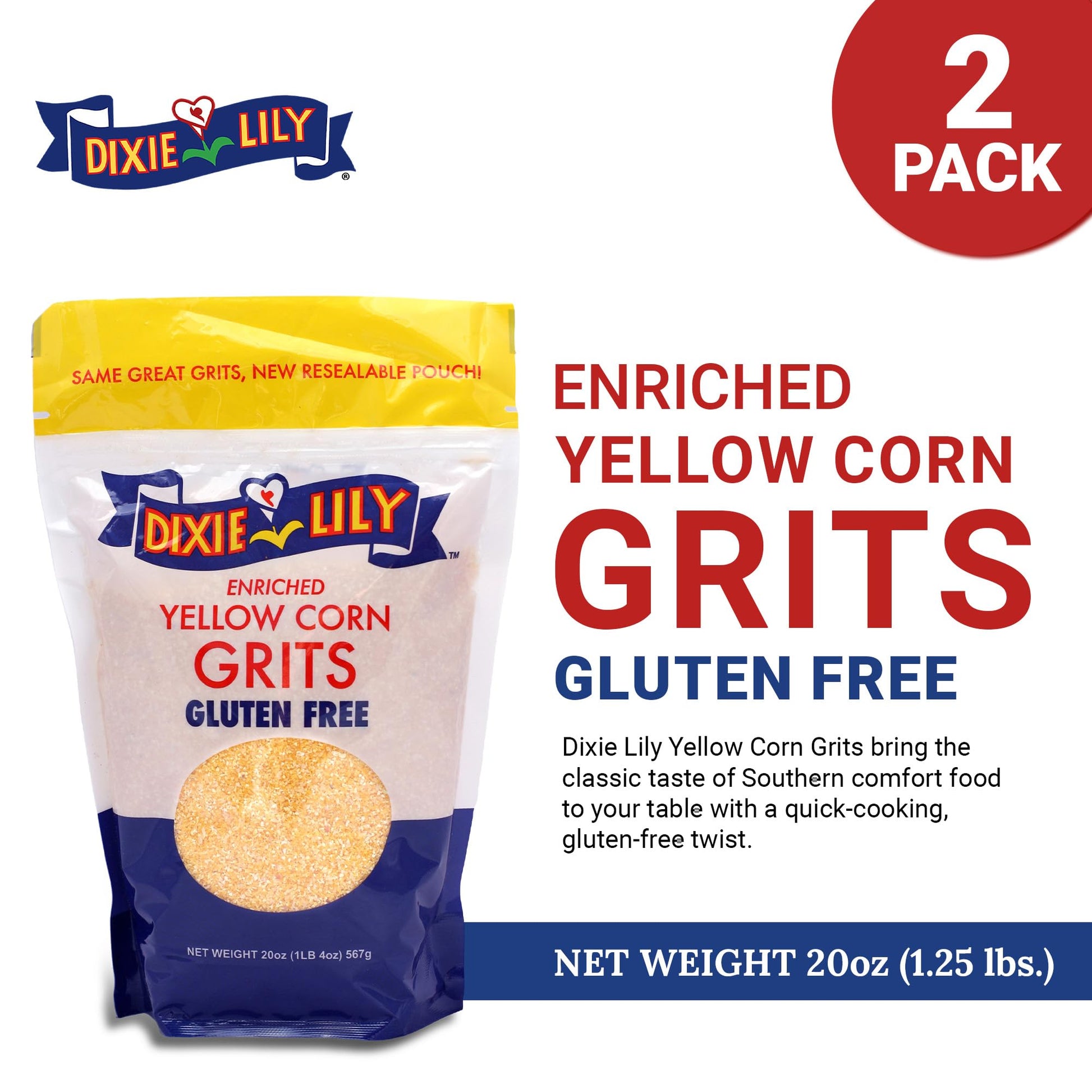 Dixie Lily Yellow Corn Grits Bring The Classic Taste Of Southern Comfort Food To Your Table With A Quick-Cooking, Gluten-Free Twist. Made From Non-Gmo Enriched Yellow Corn, These Grits Provide Essential Vitamins And Minerals Like Niacin, Iron, And Riboflavin, Making Them A Wholesome Addition To Any Meal. Low In Fat And Sodium, Theyre A Great Choice For Anyone Seeking A Nutritious Side Or Main Dish. Ready In Just 3-5 Minutes On The Stovetop Or In The Microwave, Dixie Lily Yellow Corn Grits Make It Easy To Enjoy A Warm, Satisfying Meal Without A Long Prep Time. Their Smooth, Creamy Texture And Authentic Flavor Pair Beautifully With A Variety Of Toppings, From Savory Cheese And Herbs To Sweet Fruit And Honey. Ideal For Breakfast, Lunch, Or Dinner, These Grits Add A Hearty Touch To Any Balanced Meal.