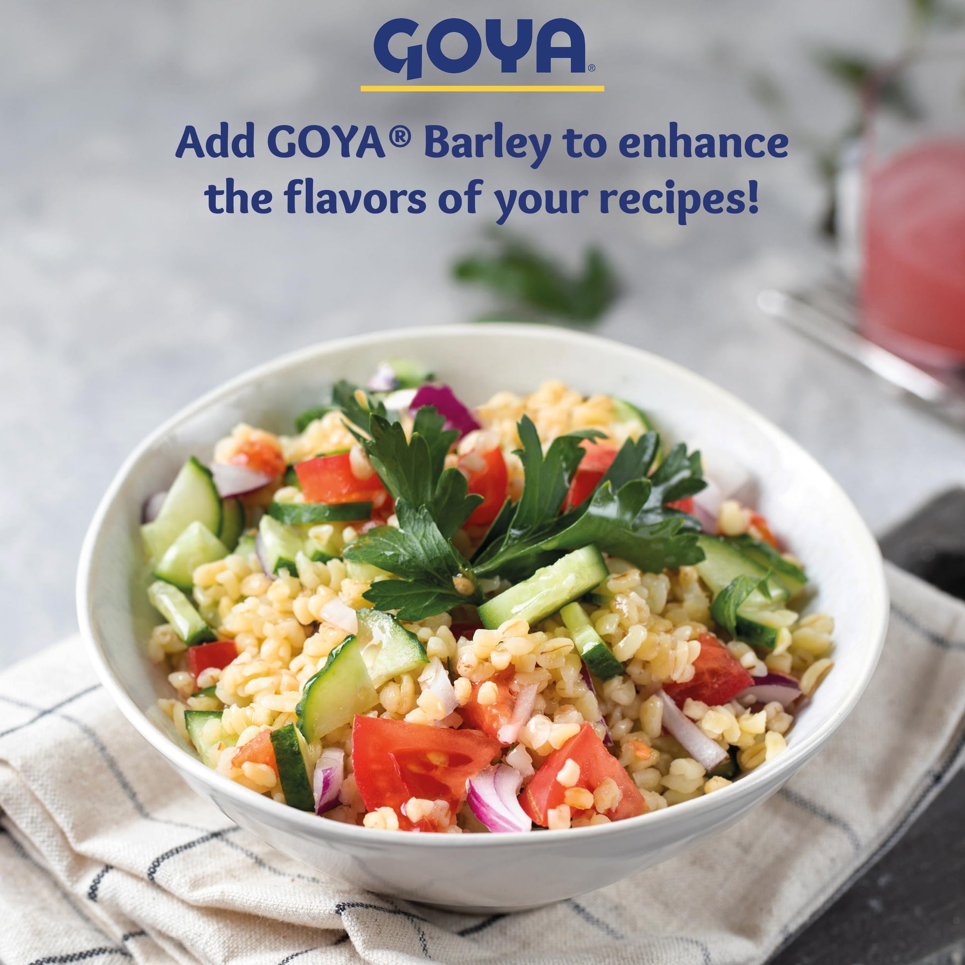 Goya Foods Barley, Dry, 1 Pound Bag (Pack of 24) | Dry Beans, Peas and Grains are a staple ingredient in pantries around the globe. Goya Barley is a nutritious whole grain with a chewy texture and nutty flavor. Delicious in healthful side dishes, salads, stews and soups, or as a substitute for rice as a side to your favorite meats, poultry and seafood. Let Goya be your source for high quality, nutritious grains such as barley, quinoa, and bulgur. Nutritious, high quality Goya Barley is an excellent source of Fiber. Low Fat, Saturated Fat Free, Cholesterol Free, Trans Fat Free, Vegan and Kosher. Simmer until tender for delicious, home cooked soups, stews, main and plant-based dishes.