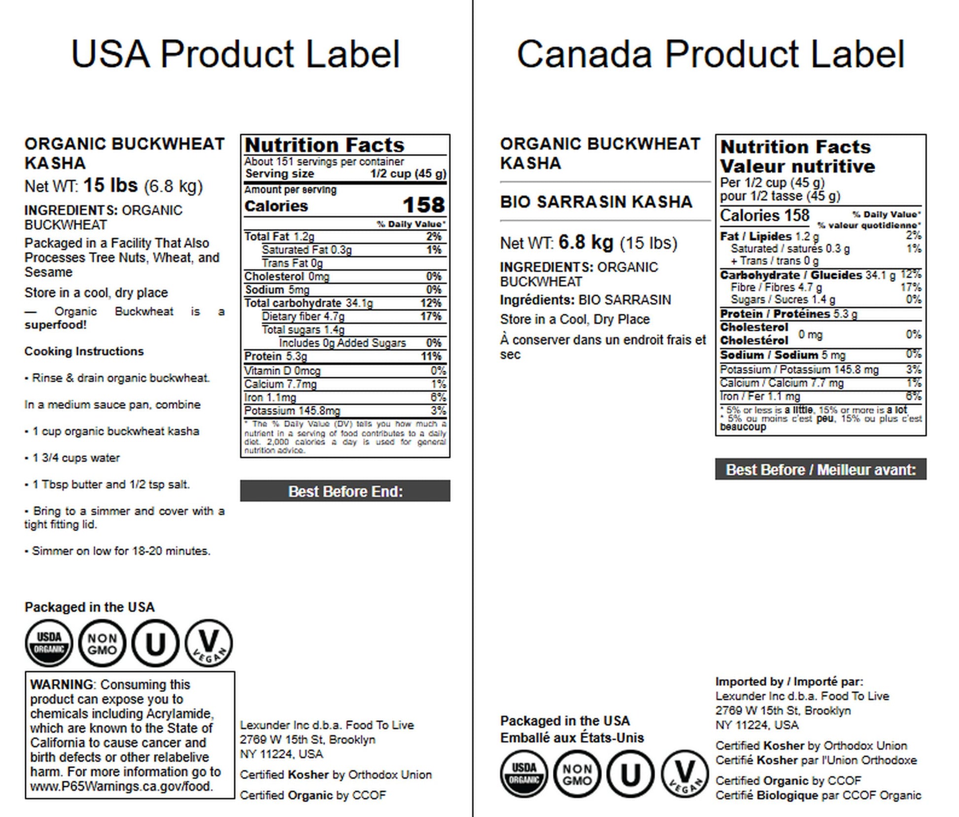 Organic Buckwheat Kernels Are Usually Considered Whole Grains, But They Are Actually Seeds. Organic Kasha Is Actually Hulled And Roasted Buckwheat Kernels. The Taste Of Organic Buckwheat Is Rich, A Little Bit Nutty. As Its Much More Flavorful Than Many Whole Grains, You Can Use It As A Substitute In Recipes. The Main Organic Buckwheat Benefits Come From The Fact That Its Nutritious And Low In Calories. This Combination Makes It A Perfect Choice For A Weight Management Diet. Many Athletes Also Love Organic Kasha Because It Gives Them Protein And Fiber Without Fat. Buckwheat Nutrition Value Is Rather High Compared To Whole Grains. One Cup Of Cooked Organic Kasha Will Provide You With: - B Vitamins - Vitamin K - Vitamin E - Calcium - Manganese - Phosphorus - Magnesium - Zinc - Iron - Copper - Selenium One Of The Great Things About Organic Buckwheat Kernels Is That You Dont Have To Pre-Soak Them Before Cooking. Of Course, You Can Do This, But They Soak Up Water So Effectively That In A Few Hours Groats Will Be All But Cooked Even Before You Turn On The Heat. This Will Make Them Mushy By The Time You Are Actually Finished Cooking. You Can Enjoy Organic Kasha In Many Ways. Use It As A Breakfast Cereal Or As An Ingredient In A Delicious Main Dish, Cooked Pilaf-Style. You Can Mill Grains Into Buckwheat Flour And Enjoy Making Organic Buckwheat Crepes And Pancakes. They Taste Incredible And Are Lower In Calories Than Wheat Products. Organic Buckwheat Kernels Are Also Safe To Use In Any Gluten-Free Baking Project. Warning: Consuming This Product Can Expose You To Chemicals Including Acrylamide, Which Is Known To The State Of California To Cause Cancer And Birth Defects Or Other Reproductive Harm. For More Information Go To Www.P65Warnings.Ca.Gov/Food