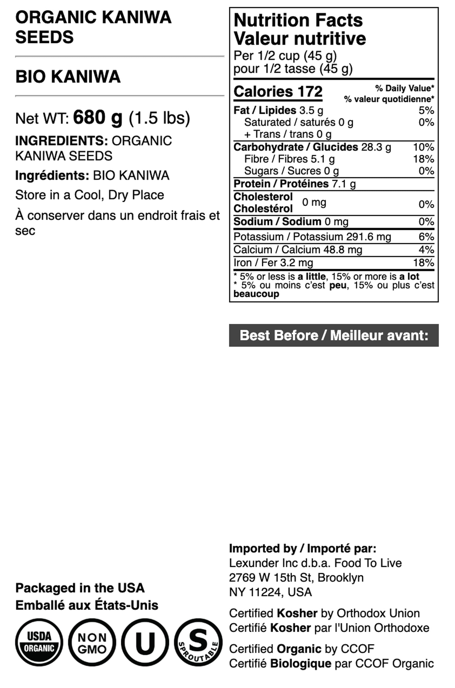 - Q: Is Organic Kaniwa similar to quinoa? A: While Organic Kaniwa is often compared to quinoa due to their similar nutritional profiles, they are different seeds. Kaniwa has a firmer texture and a slightly sweeter, nuttier flavor compared to quinoa.