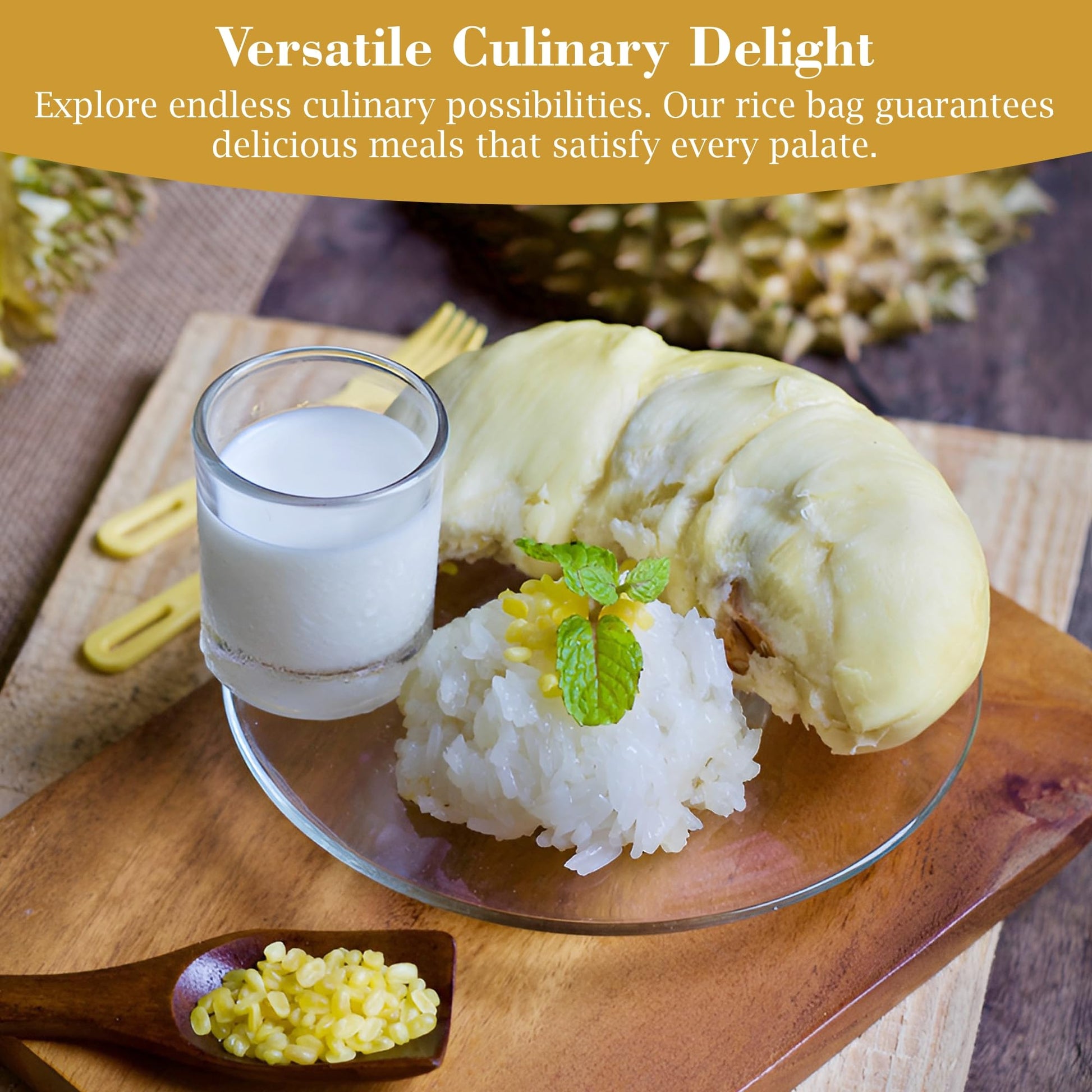 Q: What is the weight of the rice bag, and how long does it last?A: The rice comes in a generous 10lb bag, which provides excellent value. Depending on your usage, it can last for several weeks, making it ideal for families or anyone who loves cooking with sticky rice.