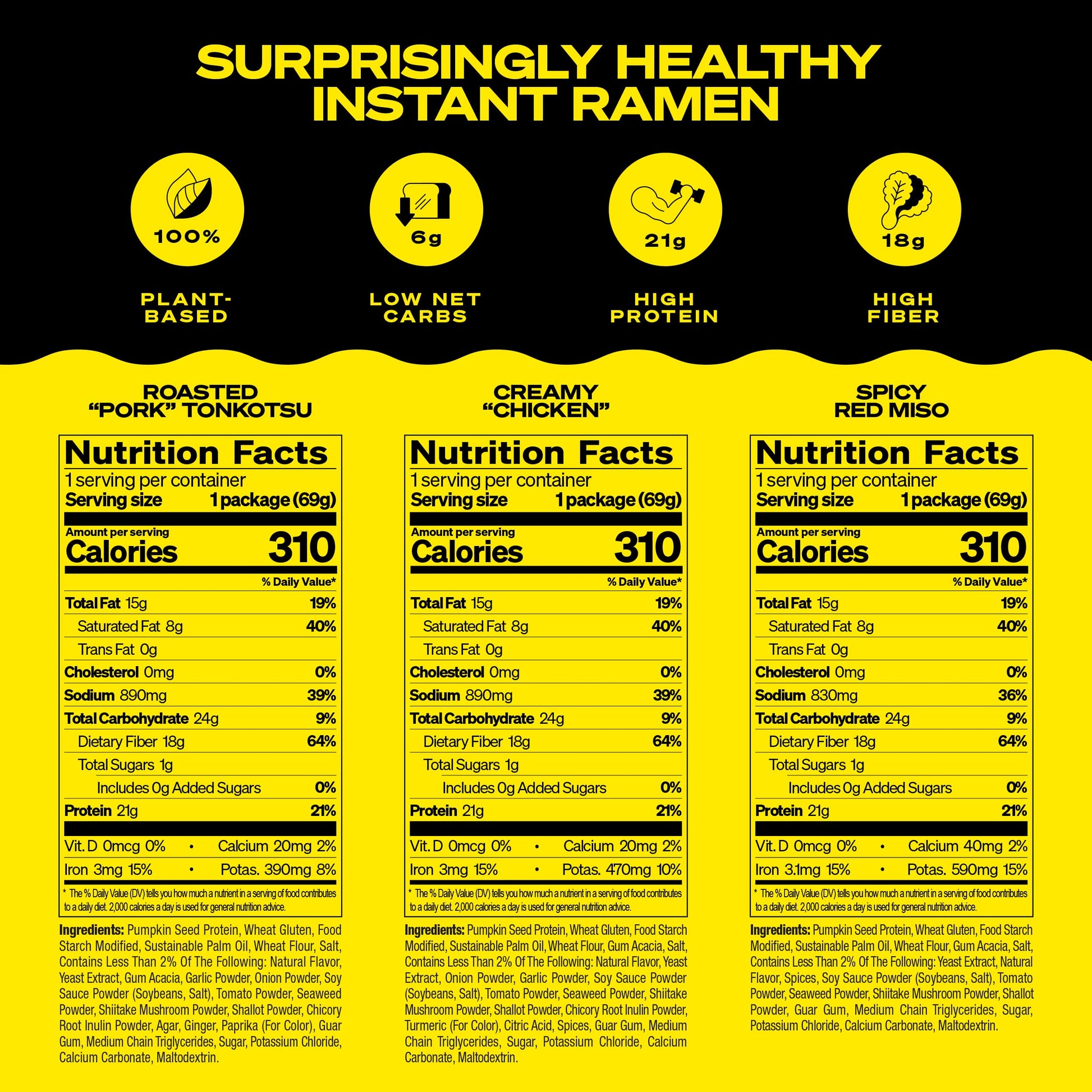 3 Flavor Variety Pack: Variety Is The Spice Of Life. Get Our Three Newest Flavors, Creamy ''Chicken'', Spicy Red Miso, And Roasted ''Pork'' Tonkotsu. You'Ll Be Covered For All Occasions.