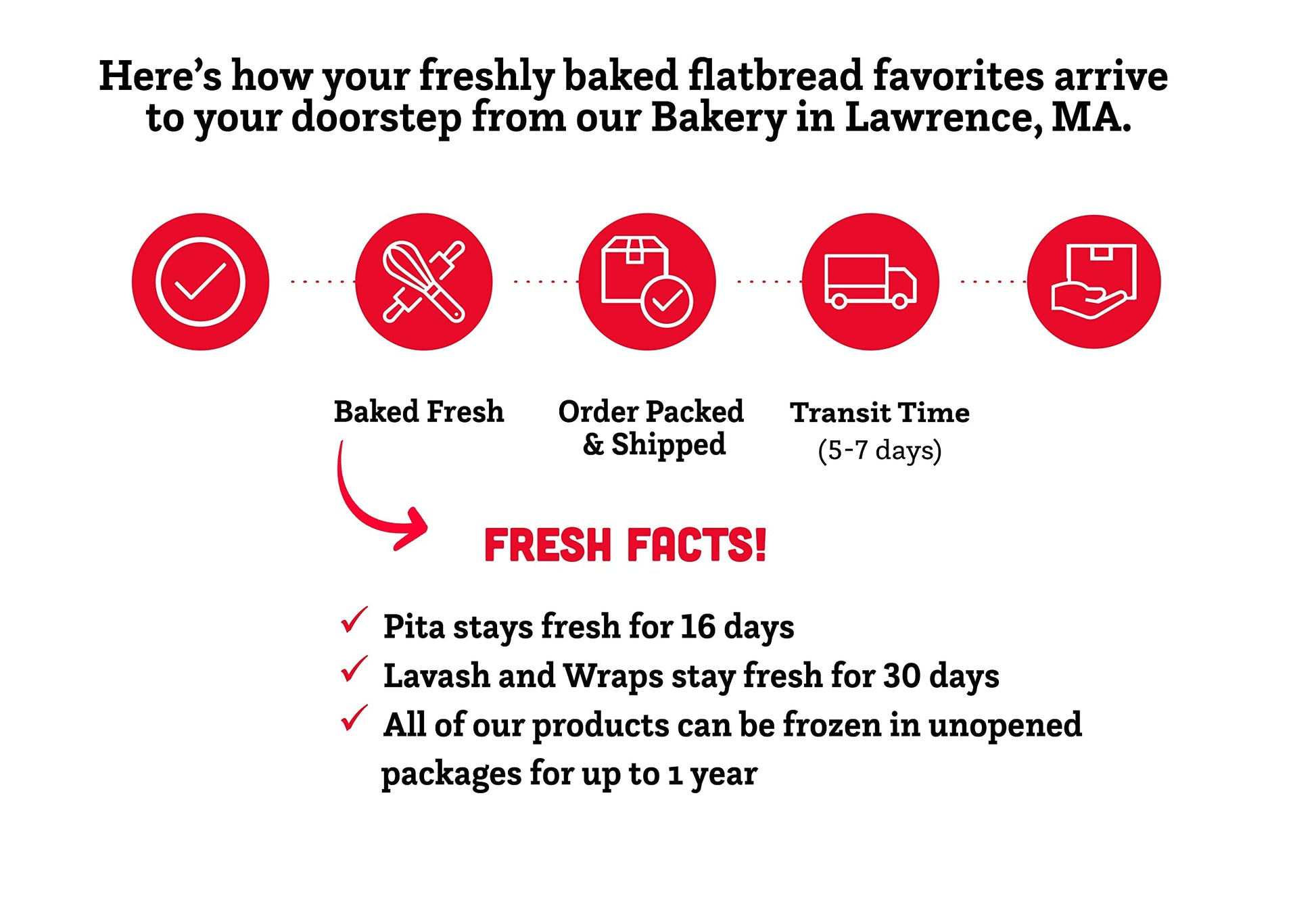 - Q: How should I store Joseph's Lavash and Pita Bread for optimal freshness? A: To maintain freshness, Joseph's breads ship fresh and should be consumed within two weeks of receipt. If you do not plan to eat them within this timeframe, you can freeze the unopened packages for up to one year. After defrosting, the Pita and Mini Pita Bread have a shelf life of 16 days, while Lavash Bread lasts for 30 days.