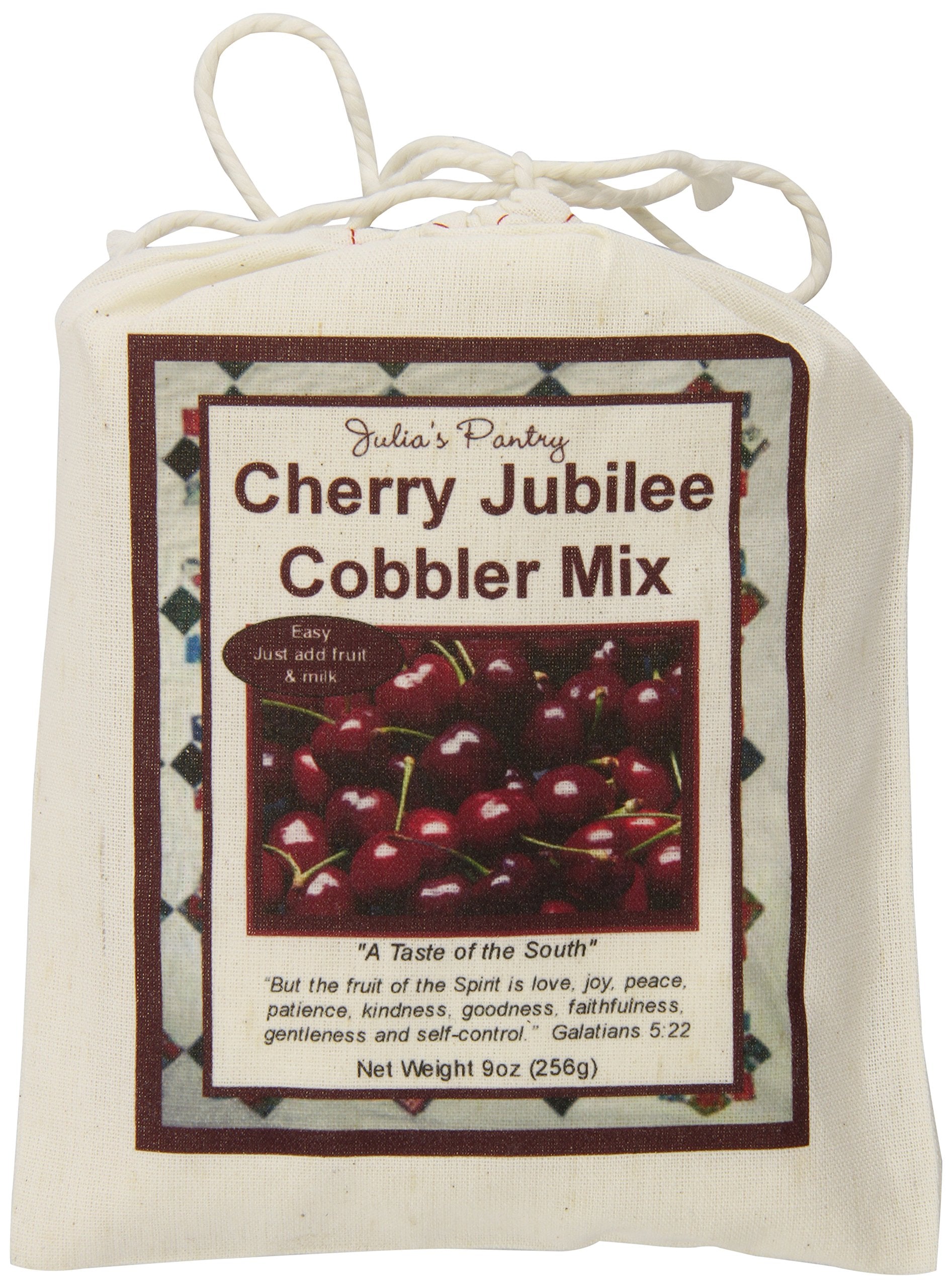 - Q: How many servings does the cobbler mix yield? A: The cooked cobbler from one bag of Julia's Pantry Cherry Jubilee Cobbler Mix will yield approximately six generous servings, making it perfect for sharing with family and friends.