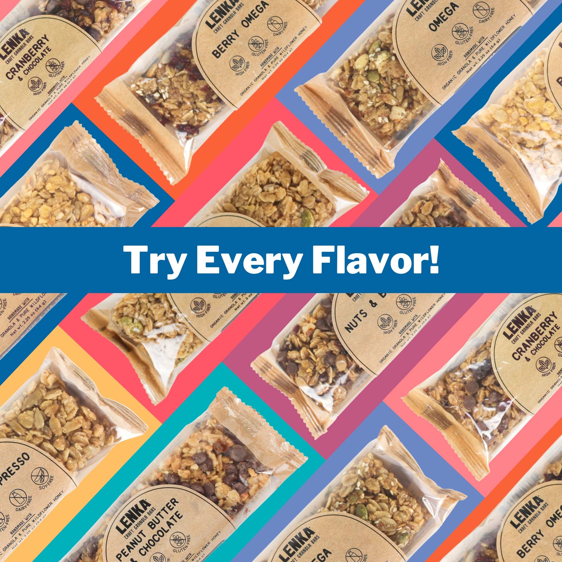Q: How many bars are included in a pack of LENKA granola bars?A: Each pack of LENKA Handmade Craft Granola Bars contains 12 individual bars, perfect for on-the-go snacking.