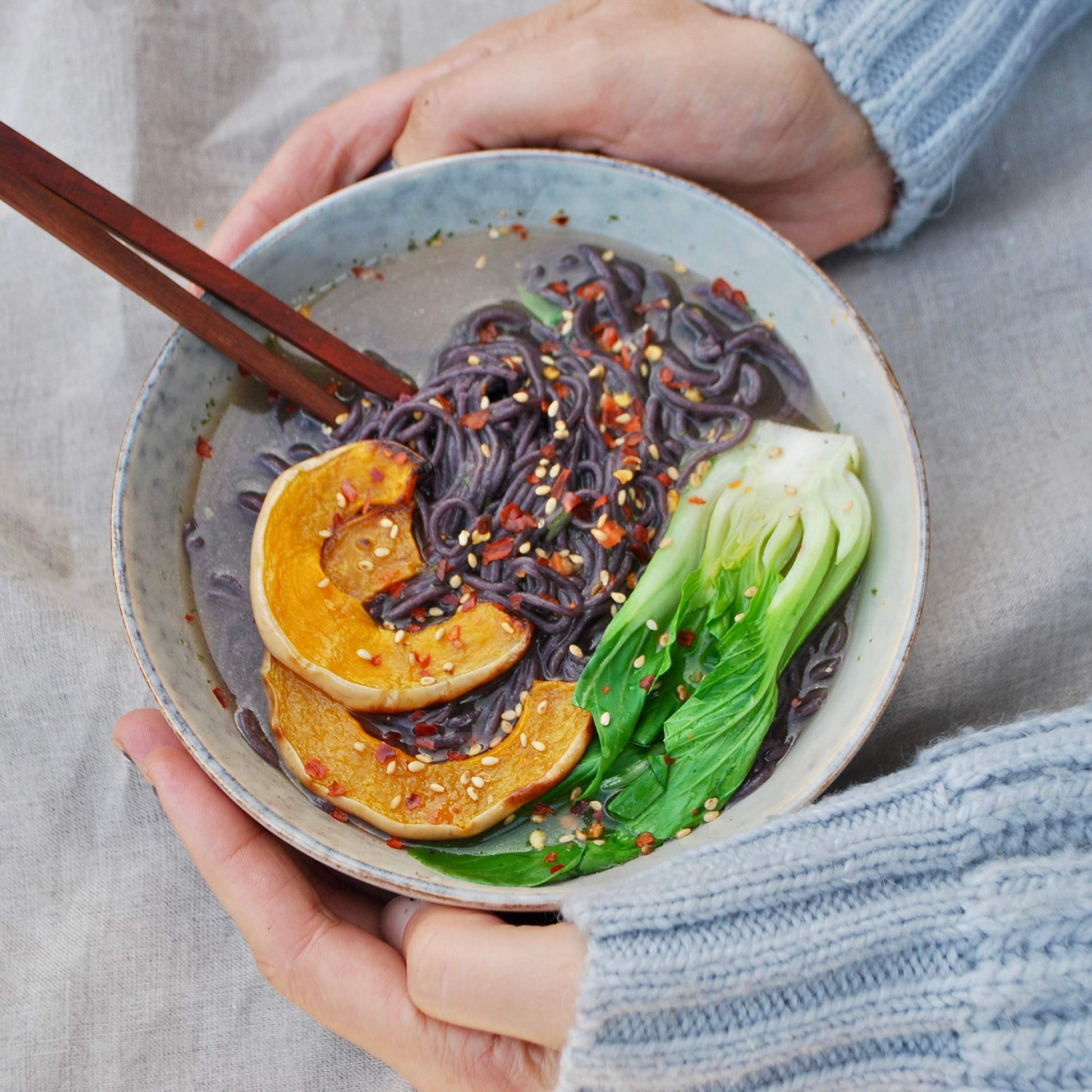 Lotus Foods brings you Forbidden Rice Ramen, traditional Japanese-style noodles made from our heirloom black rice instead of wheat. In addition to being gluten free, Forbidden Rice is one of the most nutritious ancient grains. Our Forbidden Rice Ramen has a delicious nutty taste. Ready to eat in just 4 minutes. Add to soup or miso for a quick bowl of flavorful and nourishing noodles any time. For a complete meal, use Ramen in your favorite stir-fry, or enjoy a cold noodle salad with a simple tamari and sesame oil dressing.