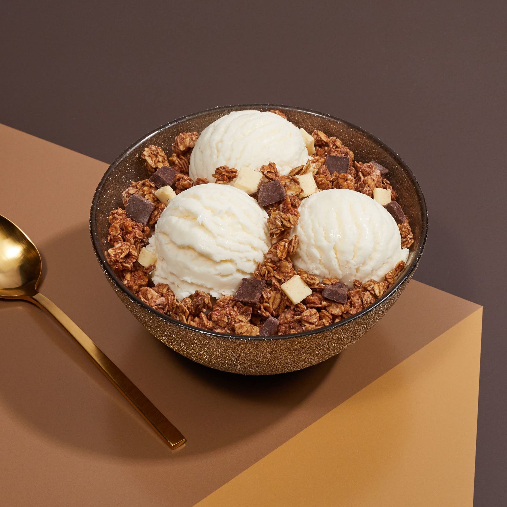 - Q: Can Love Crunch Organic Double Chocolate Chunk Granola be used as a topping for yogurt or desserts? A: Absolutely! Love Crunch Organic Double Chocolate Chunk Granola makes a delicious topping for yogurt, ice cream, or other desserts. Its rich chocolate flavor and crunchy texture add a delightful twist to your favorite treats.