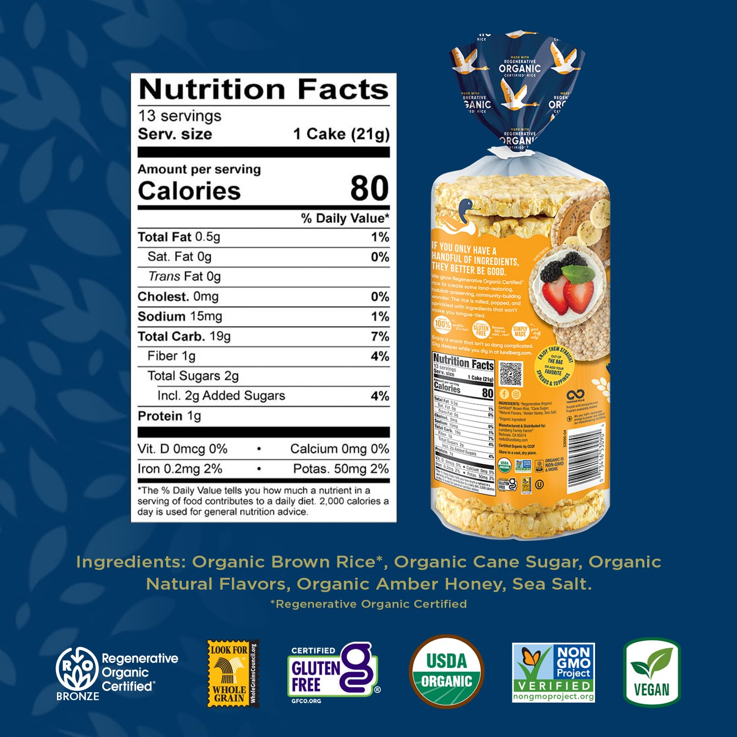 Lundberg Organic Brown Rice Cakes, Honey Nut, 9.6 Oz (Pack Of 6), Gluten-Free, Healthy Snacks