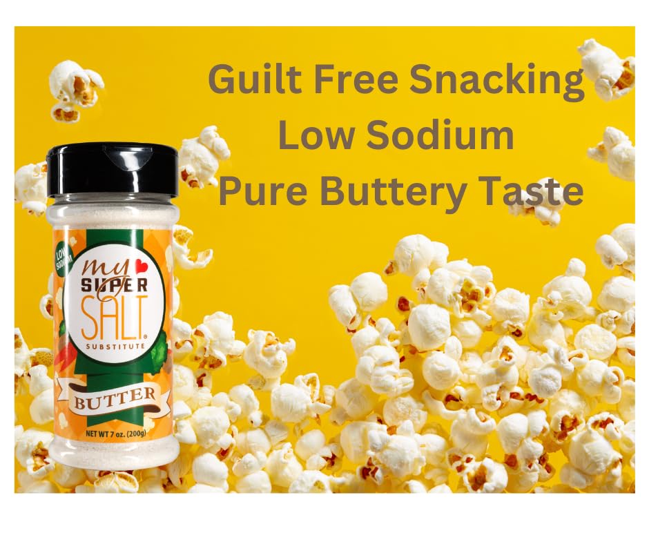 - Q: What makes My SUPER SALT® Butter a healthier alternative to regular salt? A: My SUPER SALT® Butter is a low-sodium salt substitute that contains 85% less sodium compared to traditional table salt. It delivers the rich, buttery flavor you love without the added calories or fat, making it a smarter choice for those looking to reduce their sodium intake while still enjoying delicious meals.