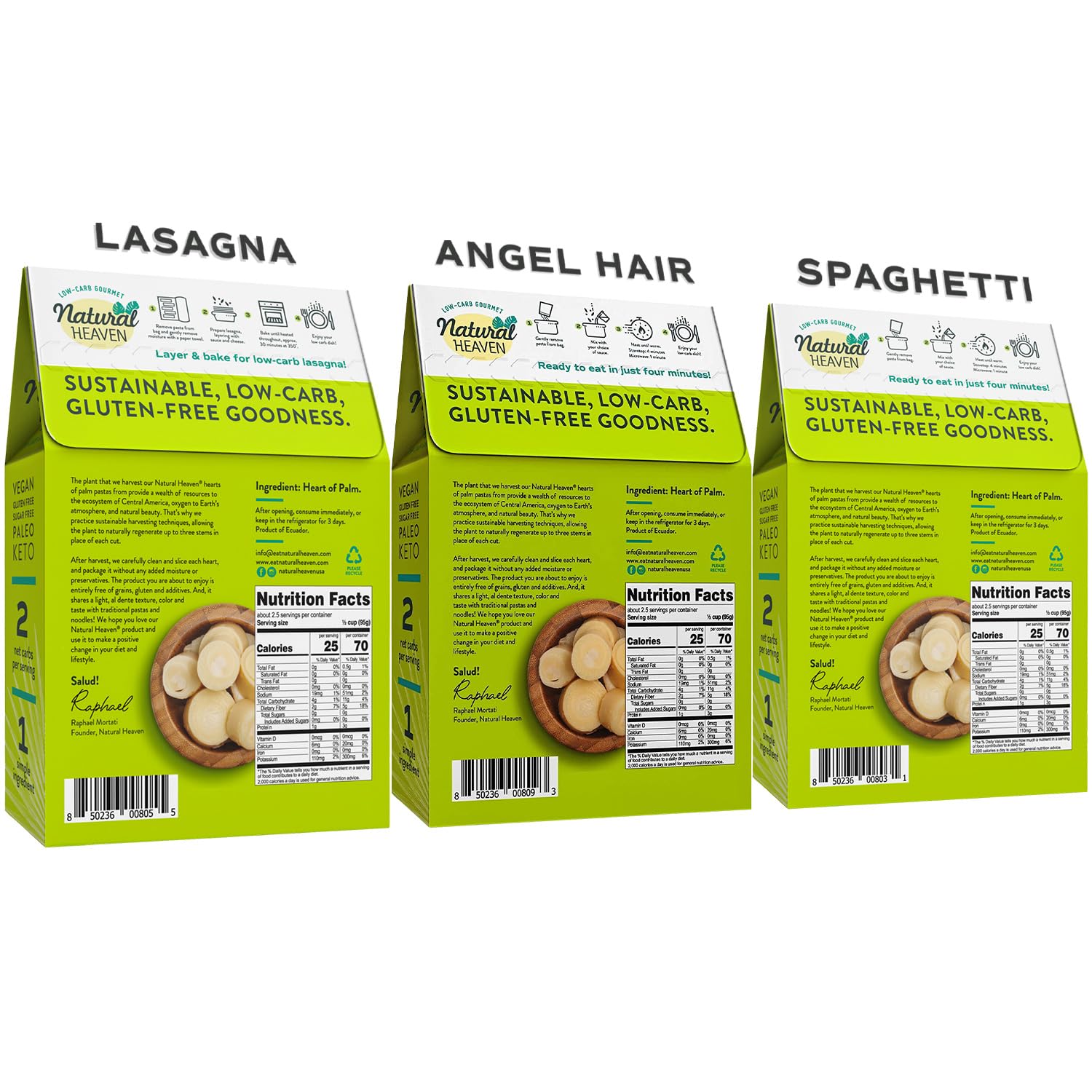 - Q: How do I prepare Natural Heaven Hearts of Palm Pasta? A: Preparing Natural Heaven Hearts of Palm Pasta is quick and easy. The fully cooked noodles are ready to eat in under five minutes, making them a convenient option for busy meals. For the lasagna, simply layer the noodles and bake for about 30 minutes.