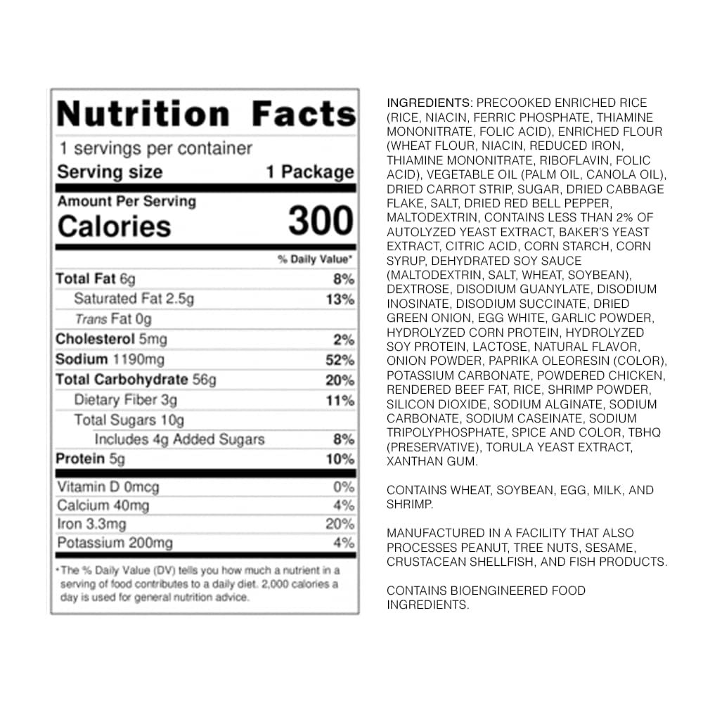 Q: What is the serving size and packaging for this product?A: Each cup contains 2.68 ounces of rice and noodles, and it comes in a convenient pack of 6, ensuring you always have an easy meal option on hand.
