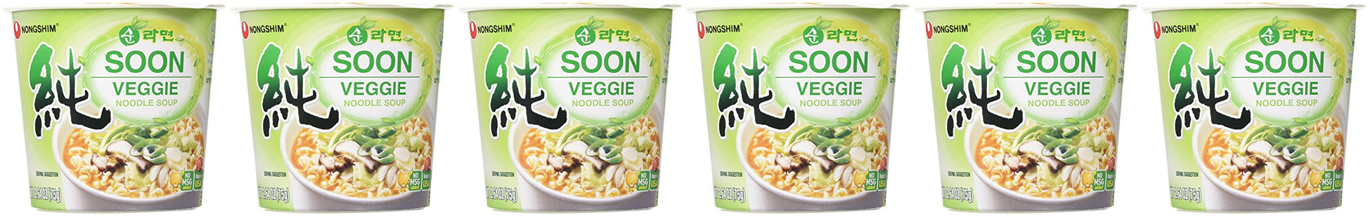 Q: What is the serving size of the Nongshim Soon Instant Vegan Ramen?A: Each cup of Nongshim Soon Instant Vegan Ramen contains 2.6 ounces, and the product comes in a pack of 6, providing a fulfilling meal option.