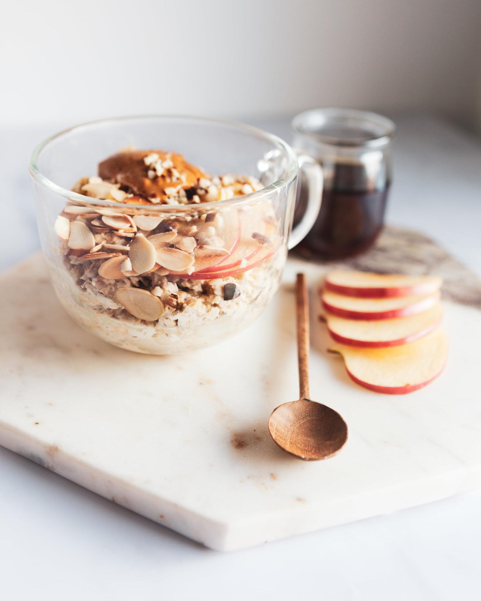 Our Maple Roasted Almond Overnight Oats offer a cozy, breakfast-in-a-bag experience thats warm and delicious, no stove required. Crafted with whole grain rolled oats, crunchy sliced almonds, dehydrated maple syrup, a whisper of coconut, and a pinch of sea salt, it delivers creamy, wholesome flavor with every spoonful. Just stir in your favorite milk, let it soak overnight, and wake up to a satisfying, plant-powered breakfast that feels like an autumn treat any time of year.